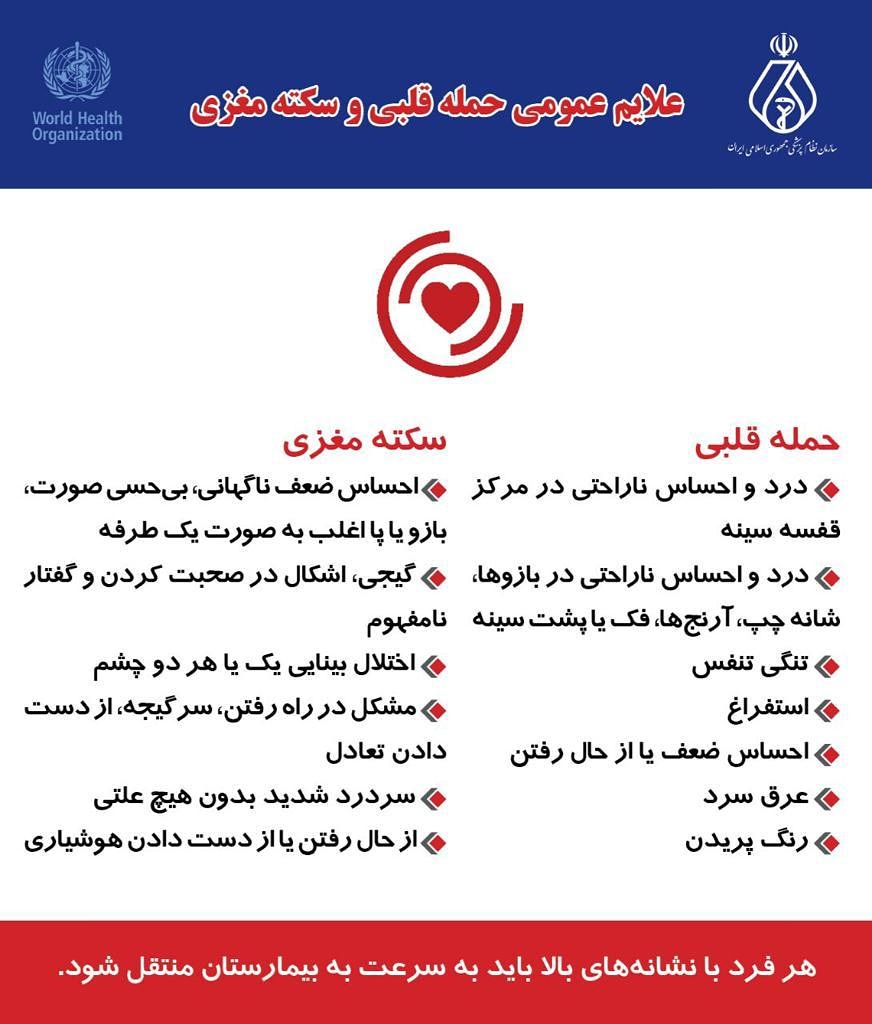 مقایسه علایم عمومی سکته قلبی و مغزی