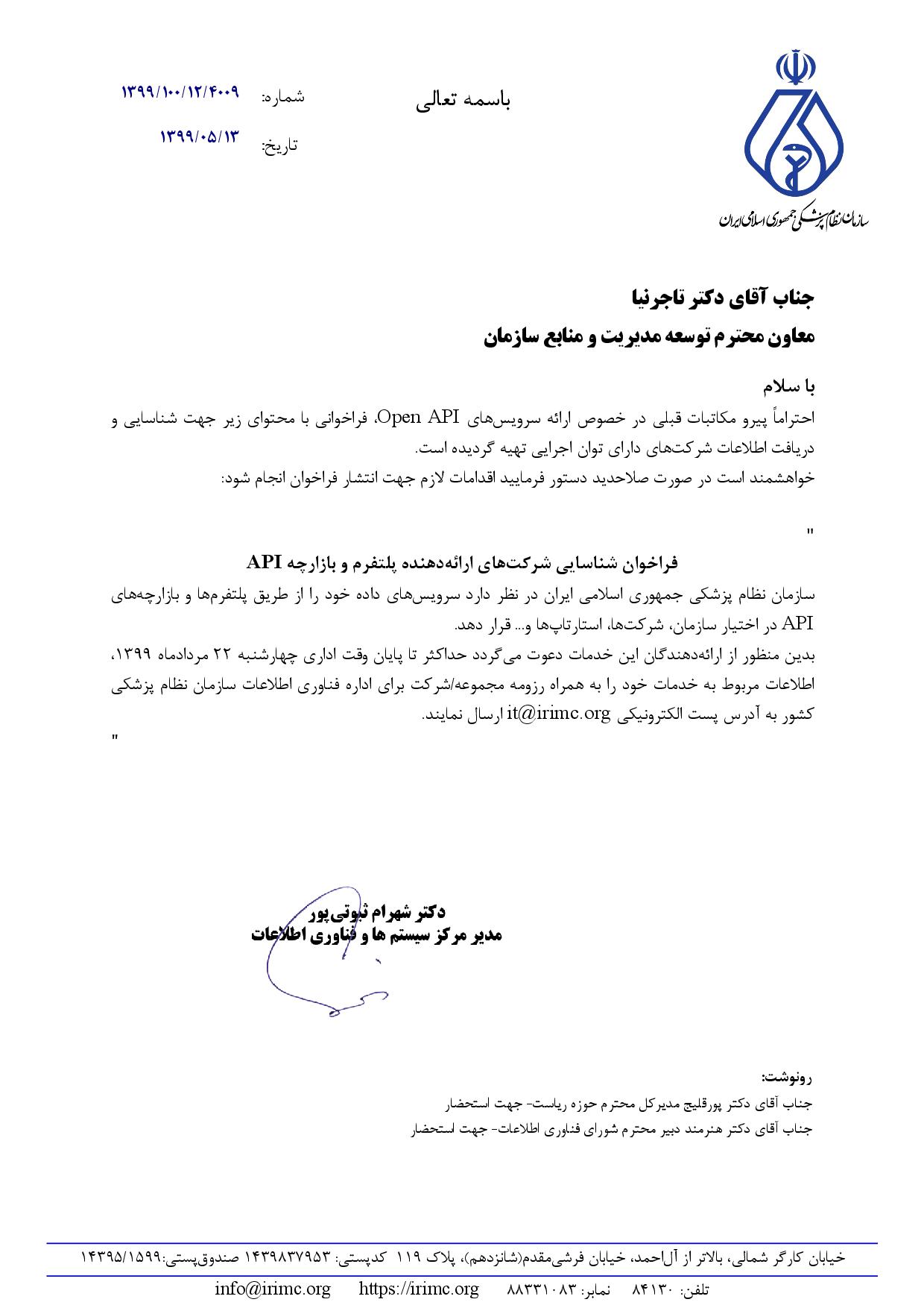 فراخوان شناسایی شرکت های ارایه دهنده پلتفرم و بازارچه API
