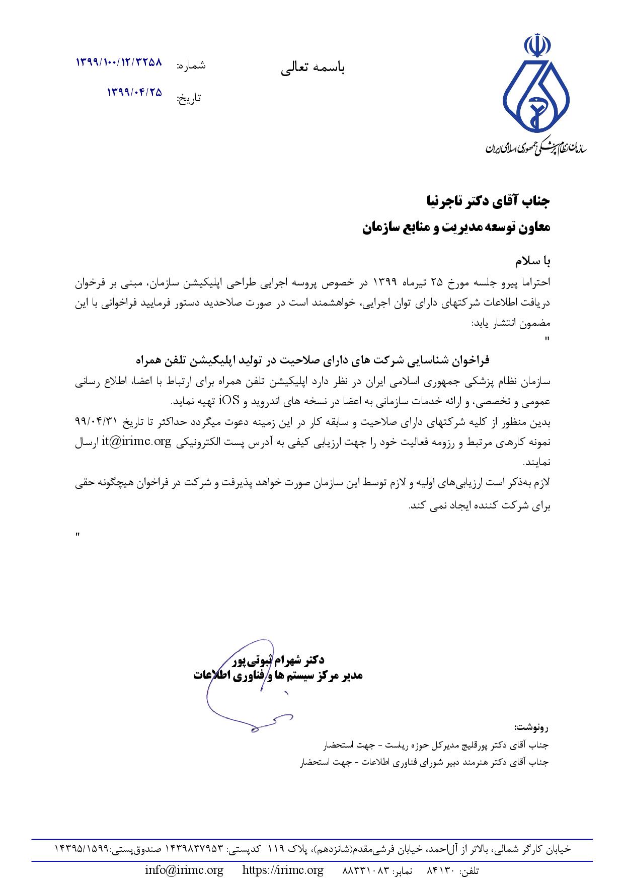 فراخوان شناسایی شرکت های دارای صلاحیت در تولید اپلیکیشن تلفن همراه