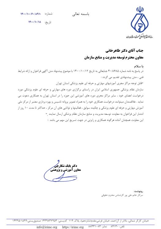 فراخوان برگزاری دوره های مهارتی و حرفه ای علوم پزشکی