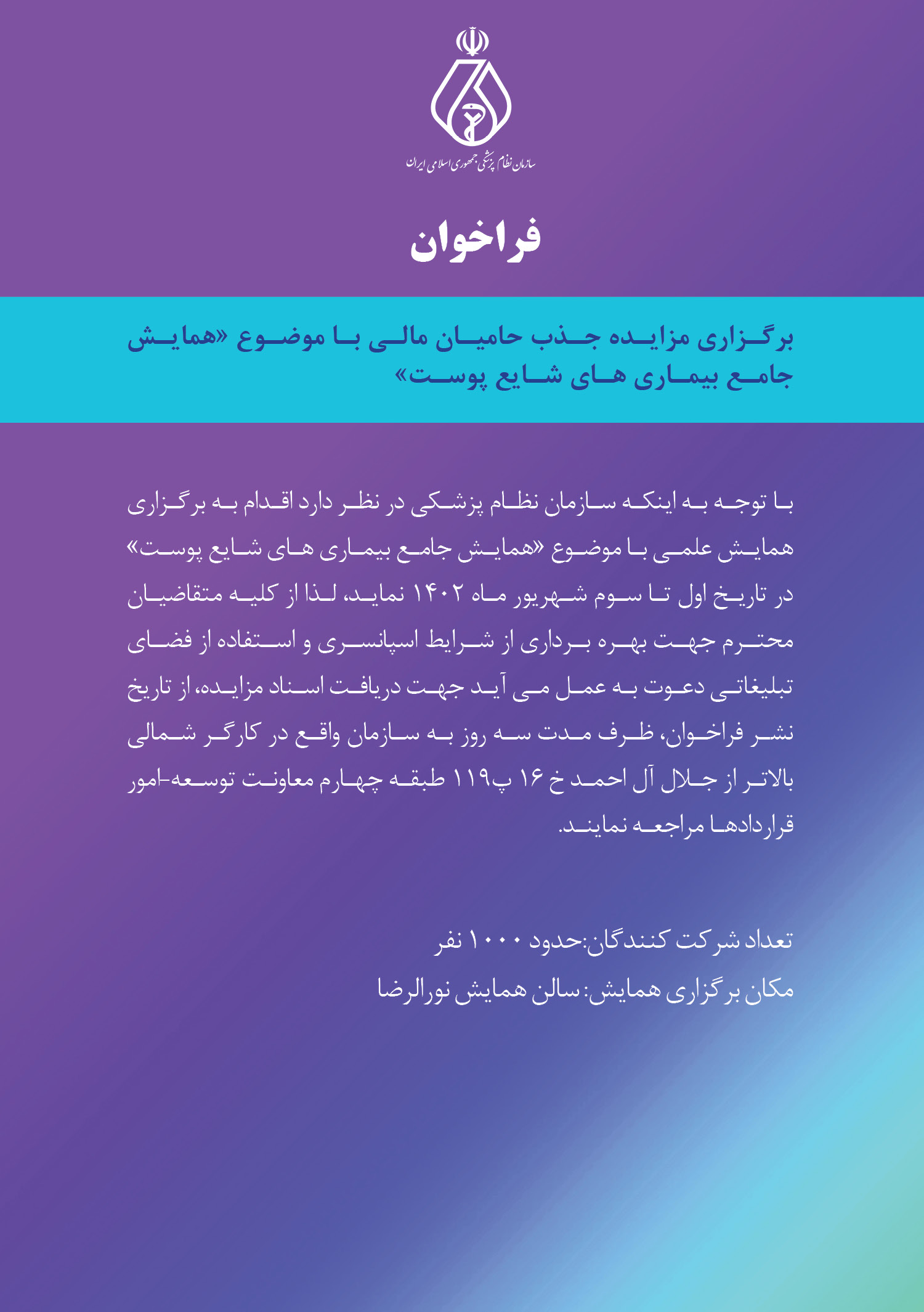 برگزاری مزایده جذب حامیان مالی با موضوع "همایش جامع بیماری های شایع پوست"