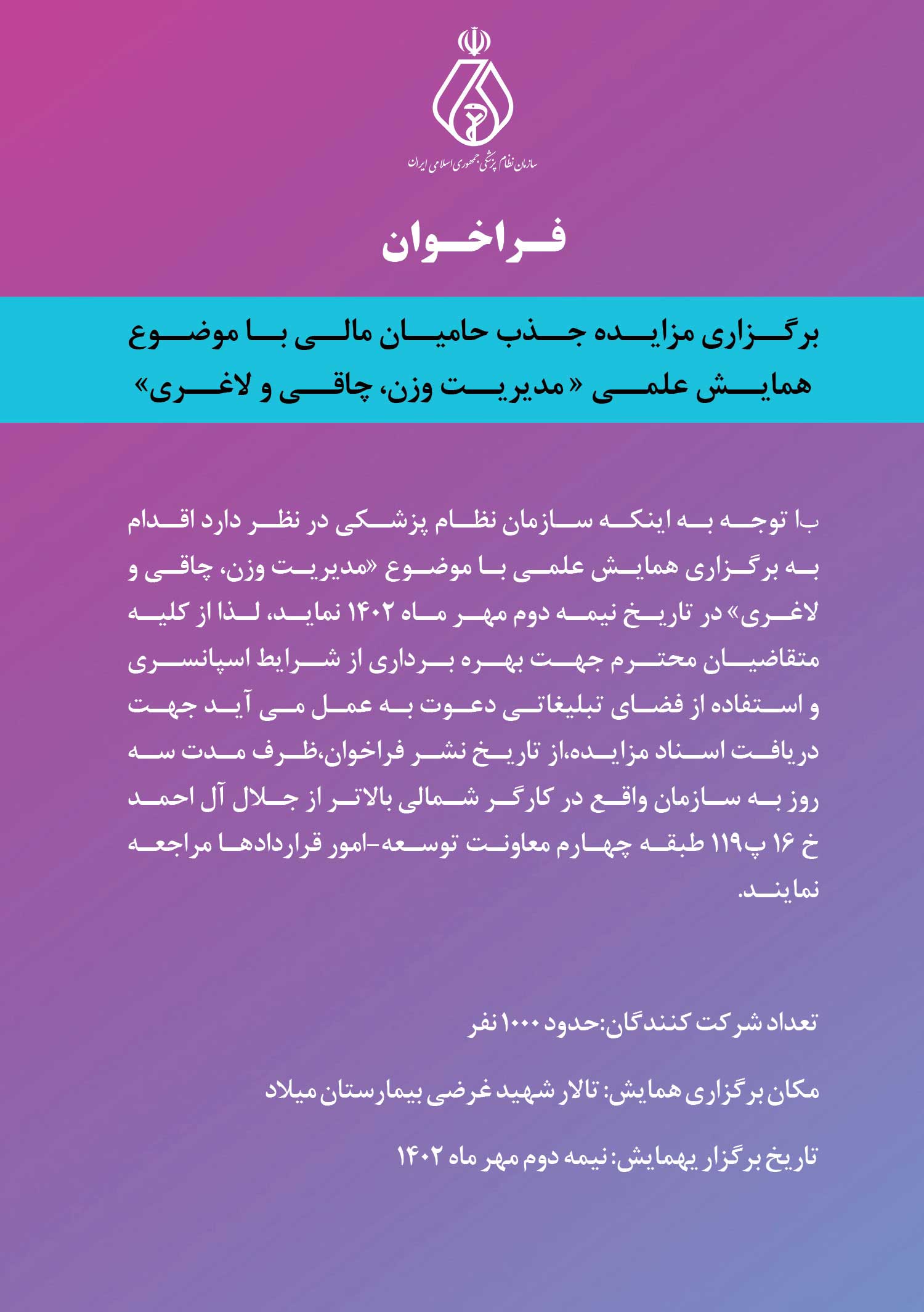 برگزاری مزایده جذب حامیان مالی همایش علمی با موضوع " مدیریت وزن، چاقی و لاغری"