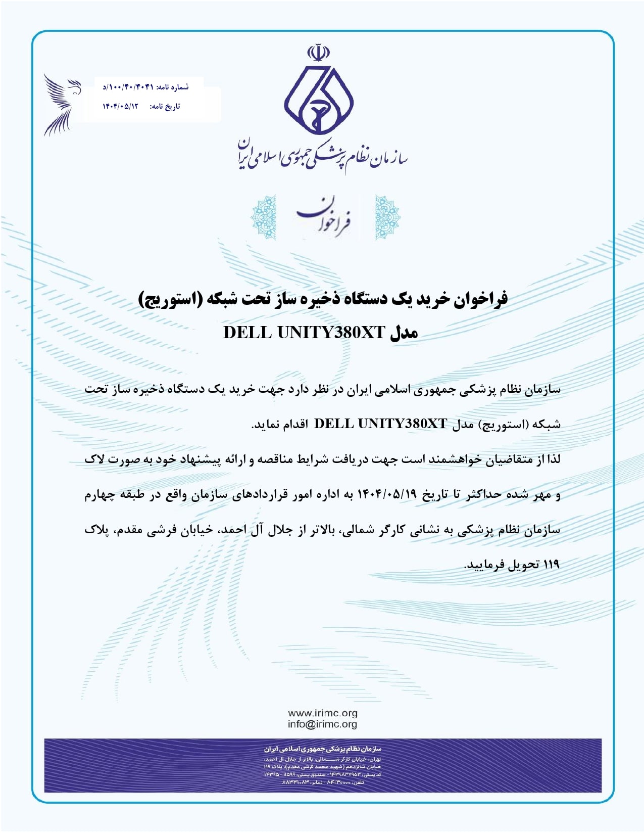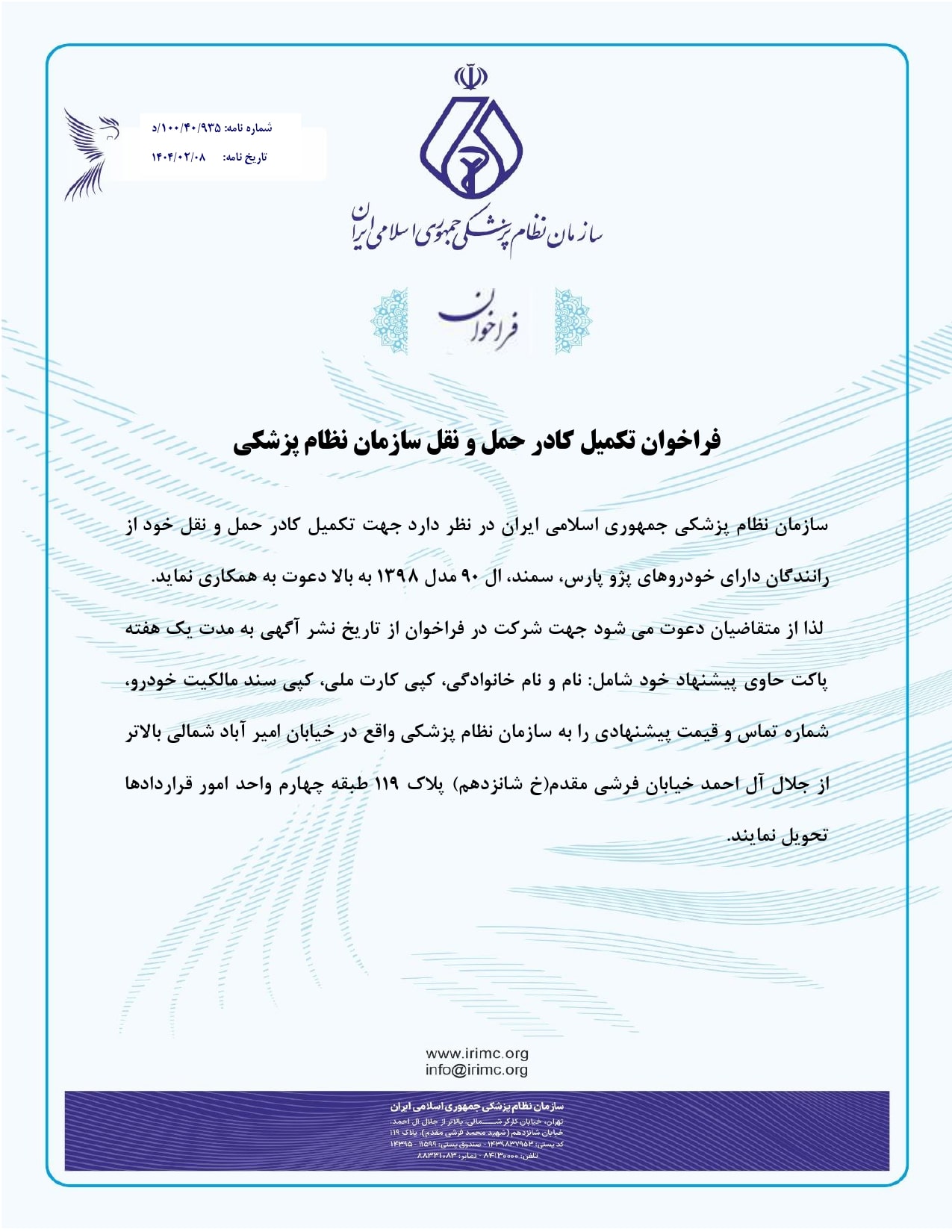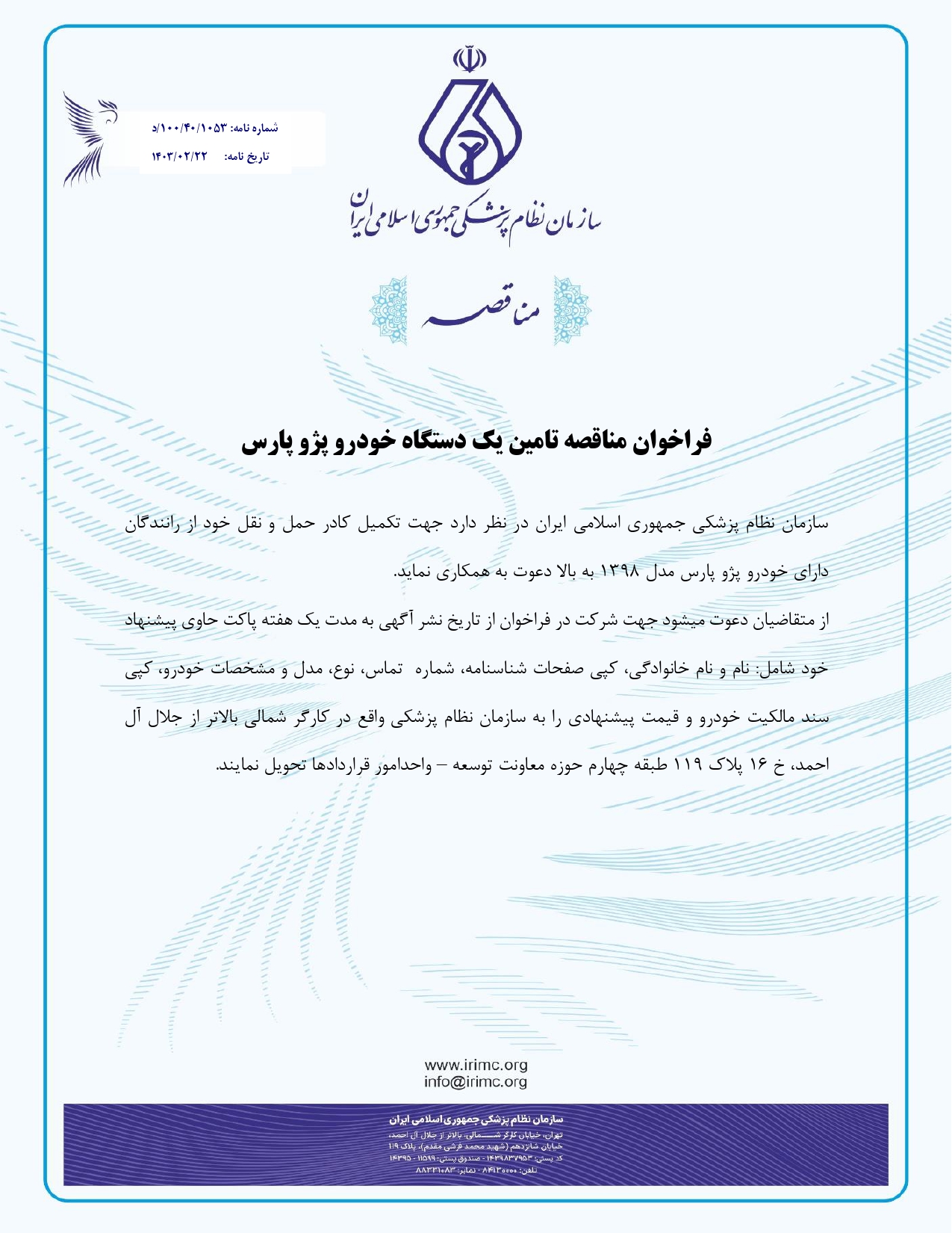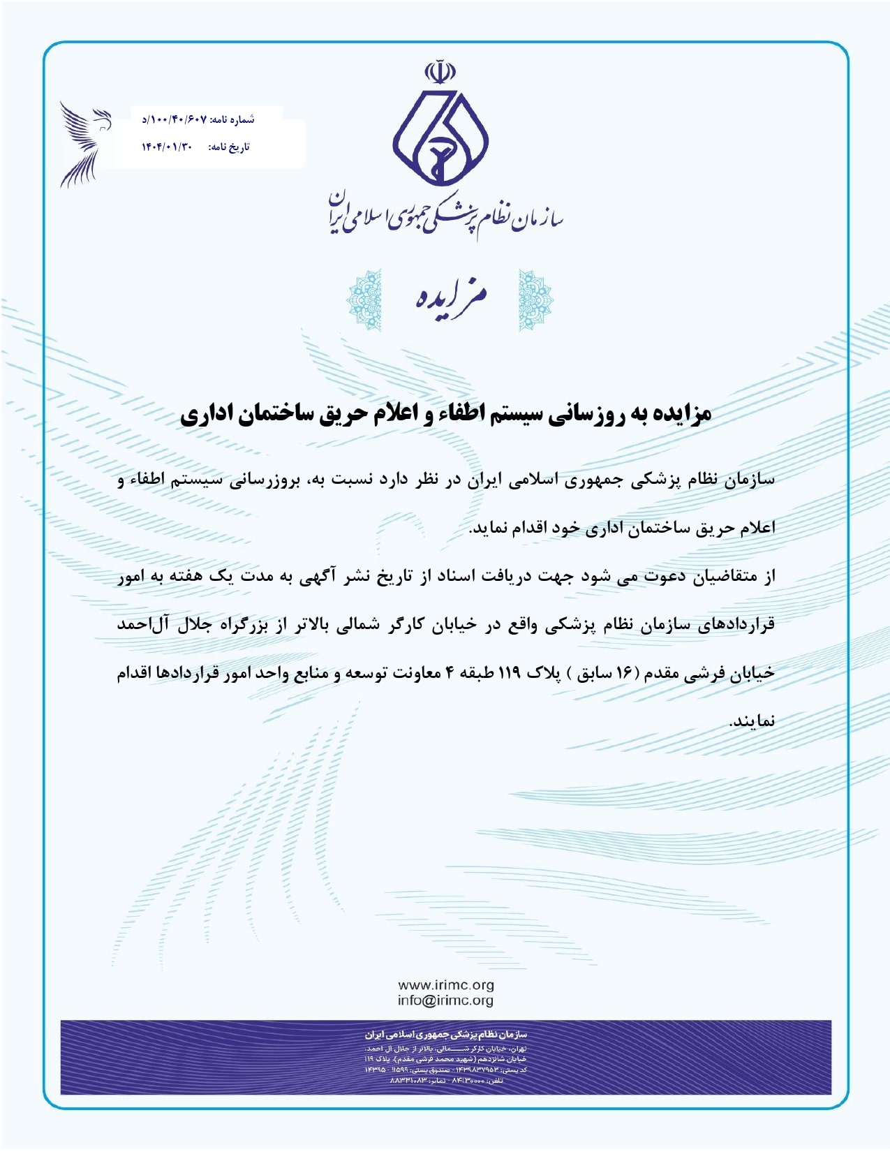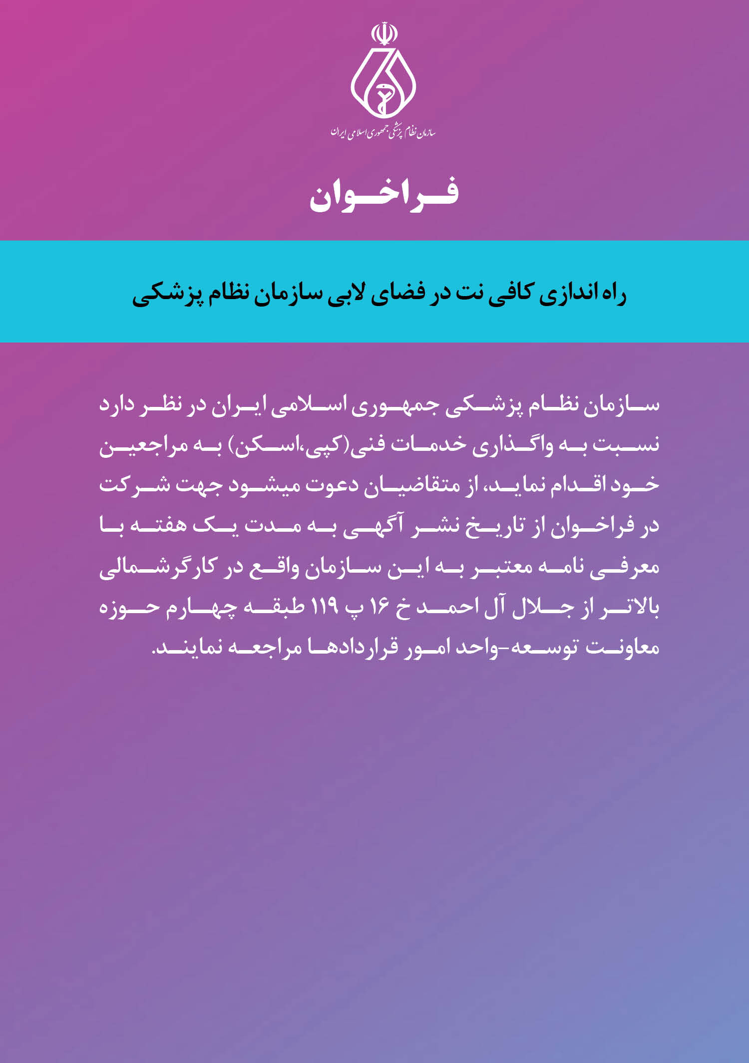 فراخوان واحد تدارکات سازمان نظام پزشکی