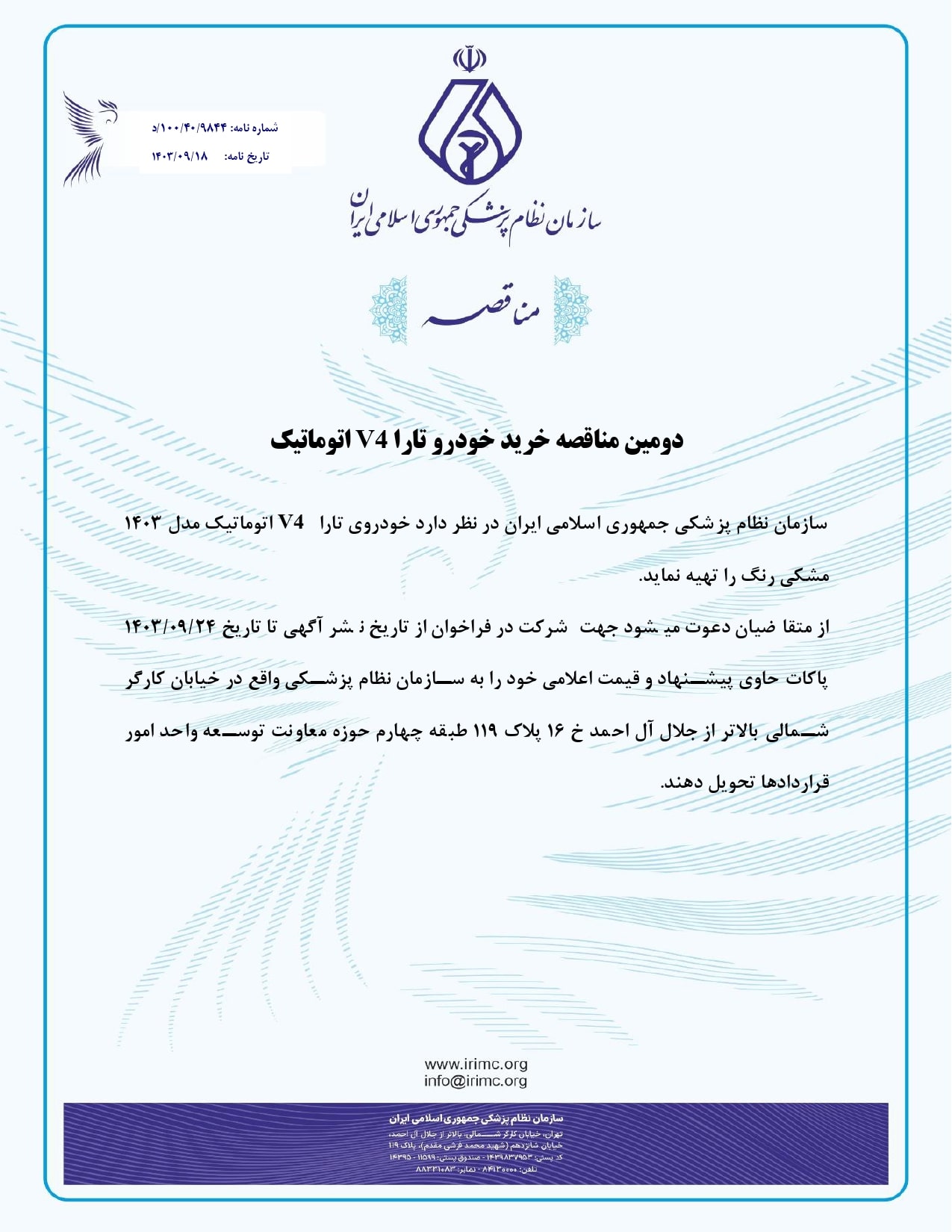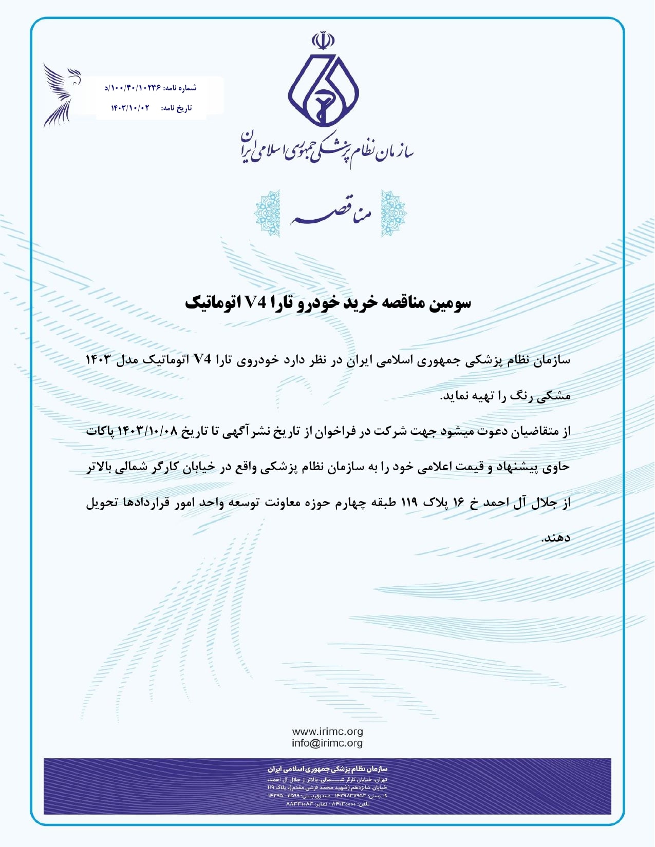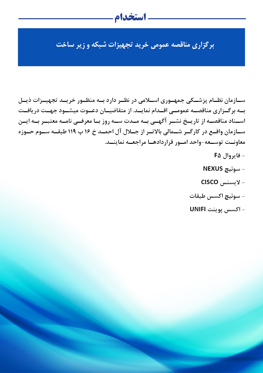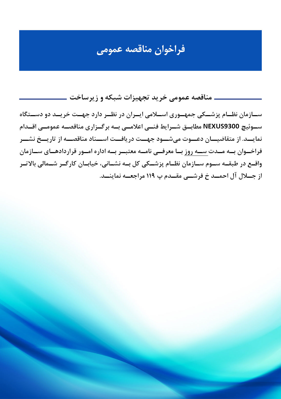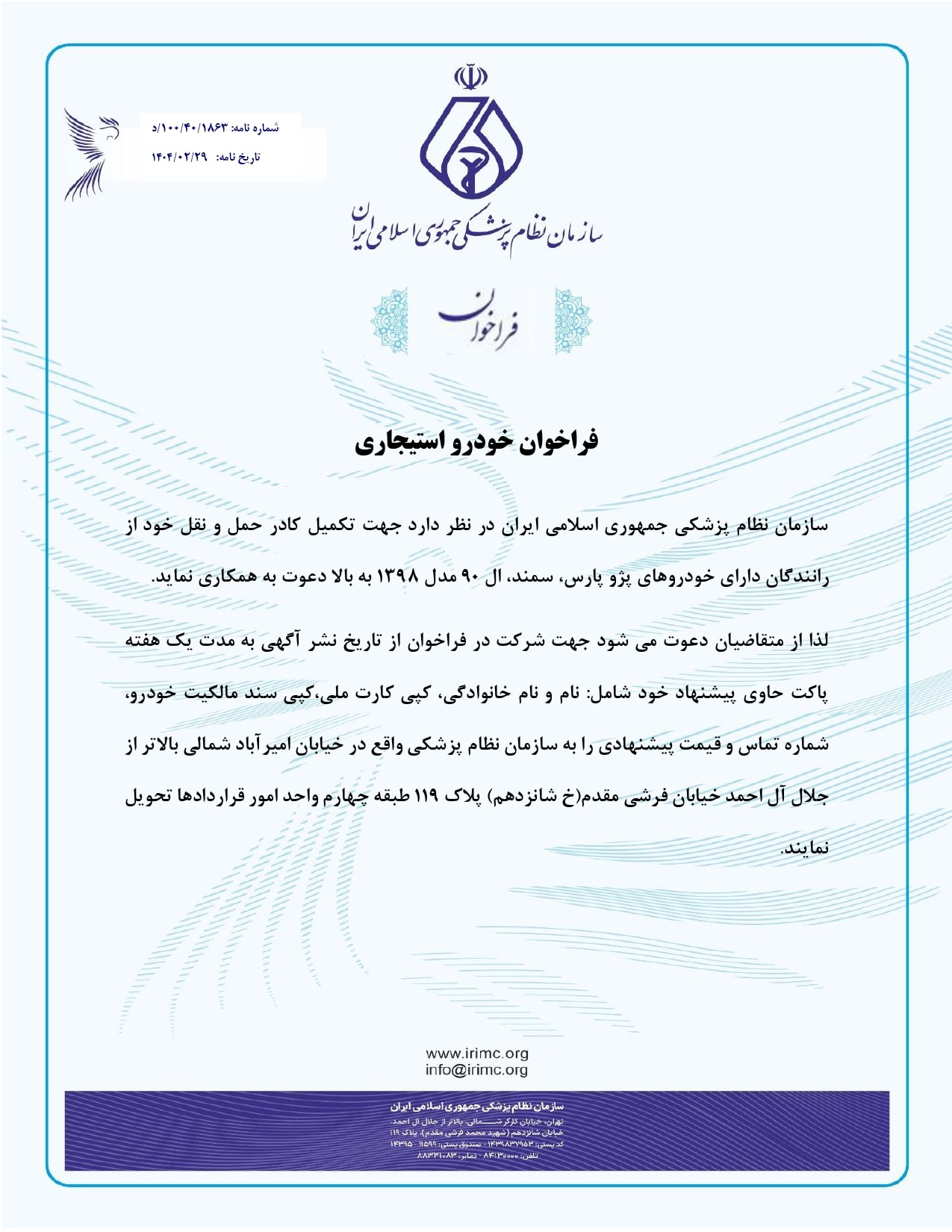 فراخوان واحد تدارکات سازمان نظام پزشکی