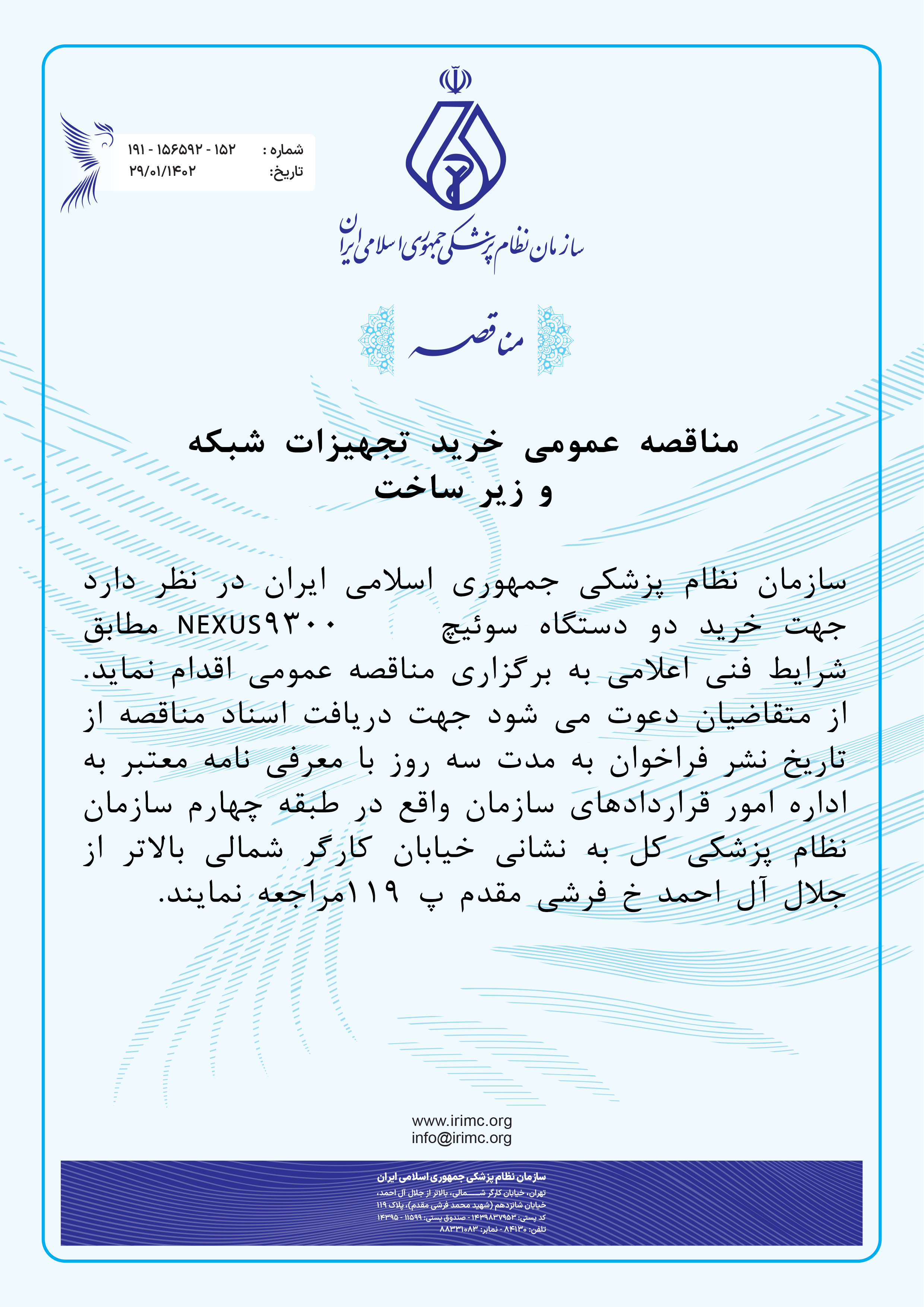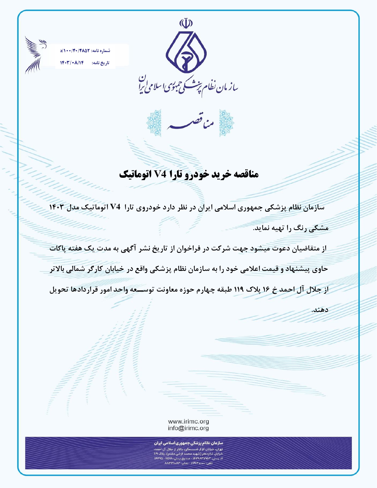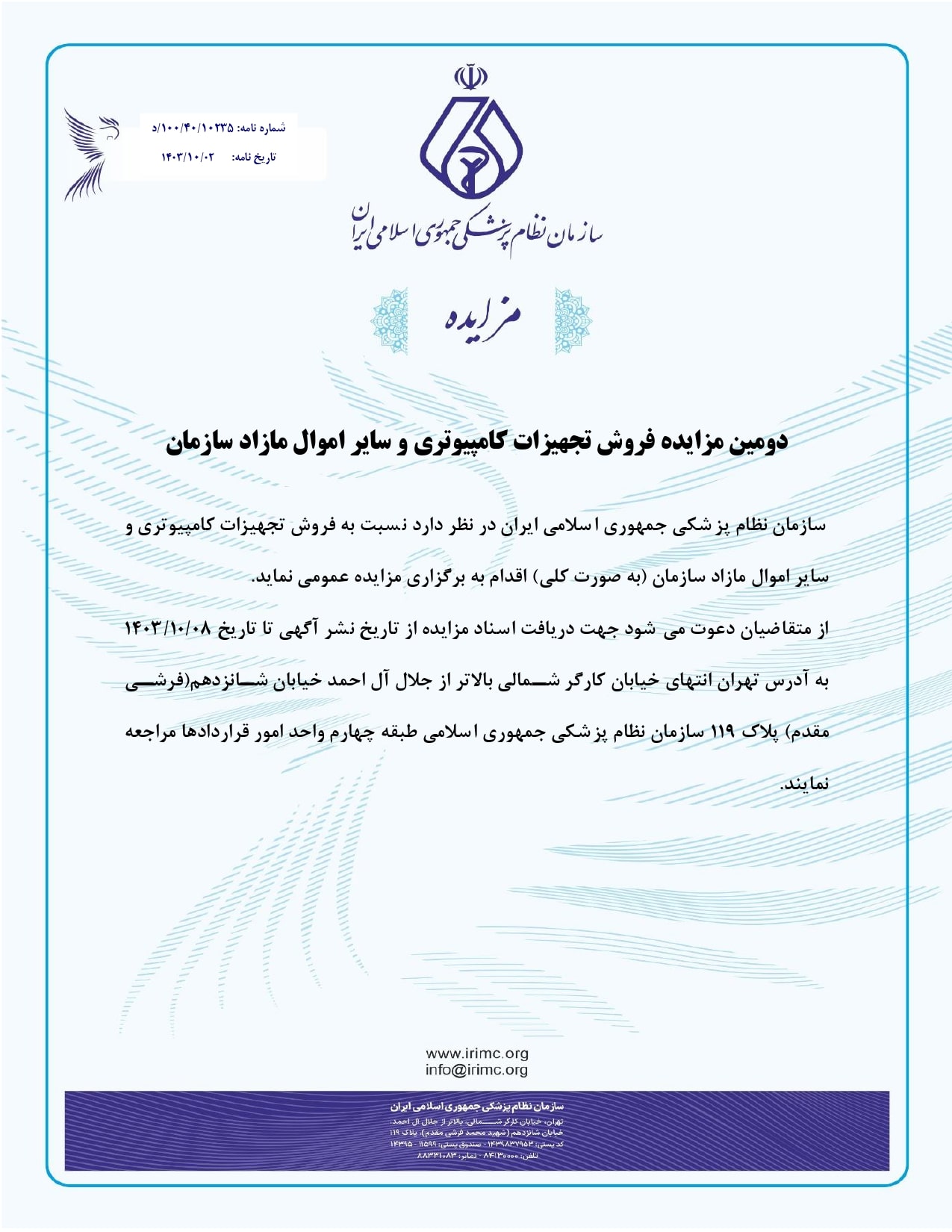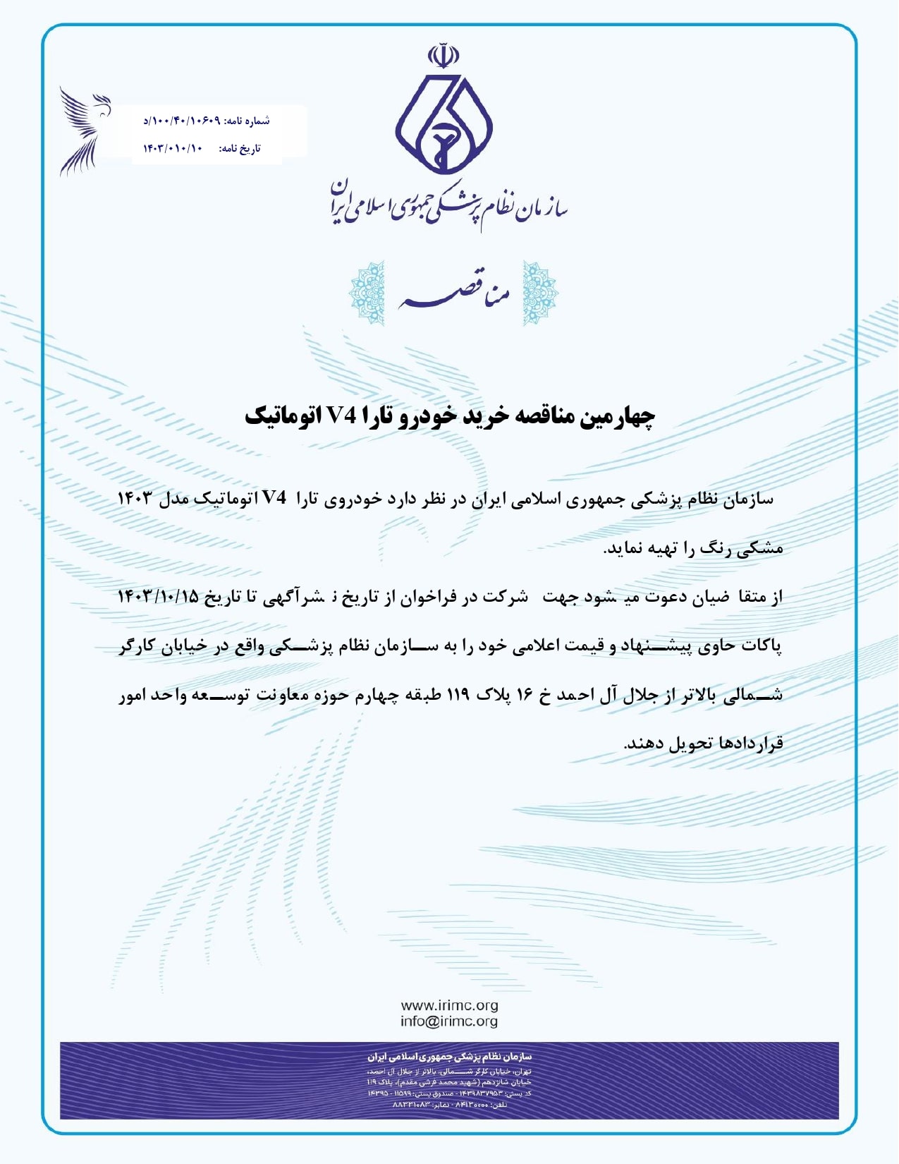 فراخوان واحد تدارکات سازمان نظام پزشکی