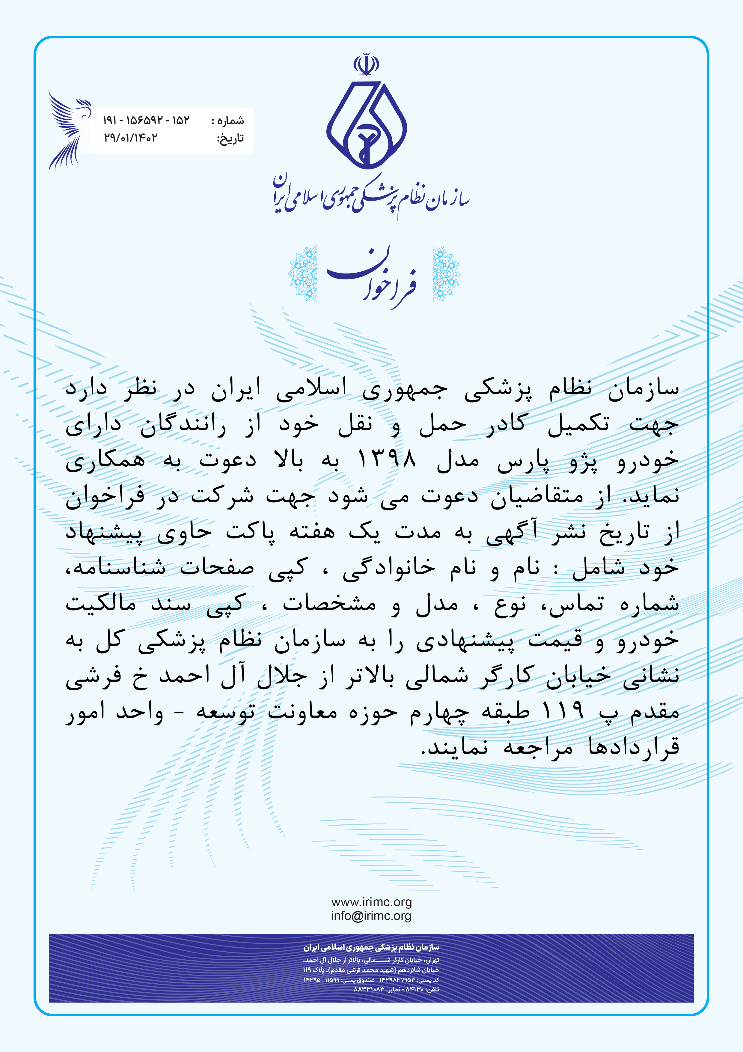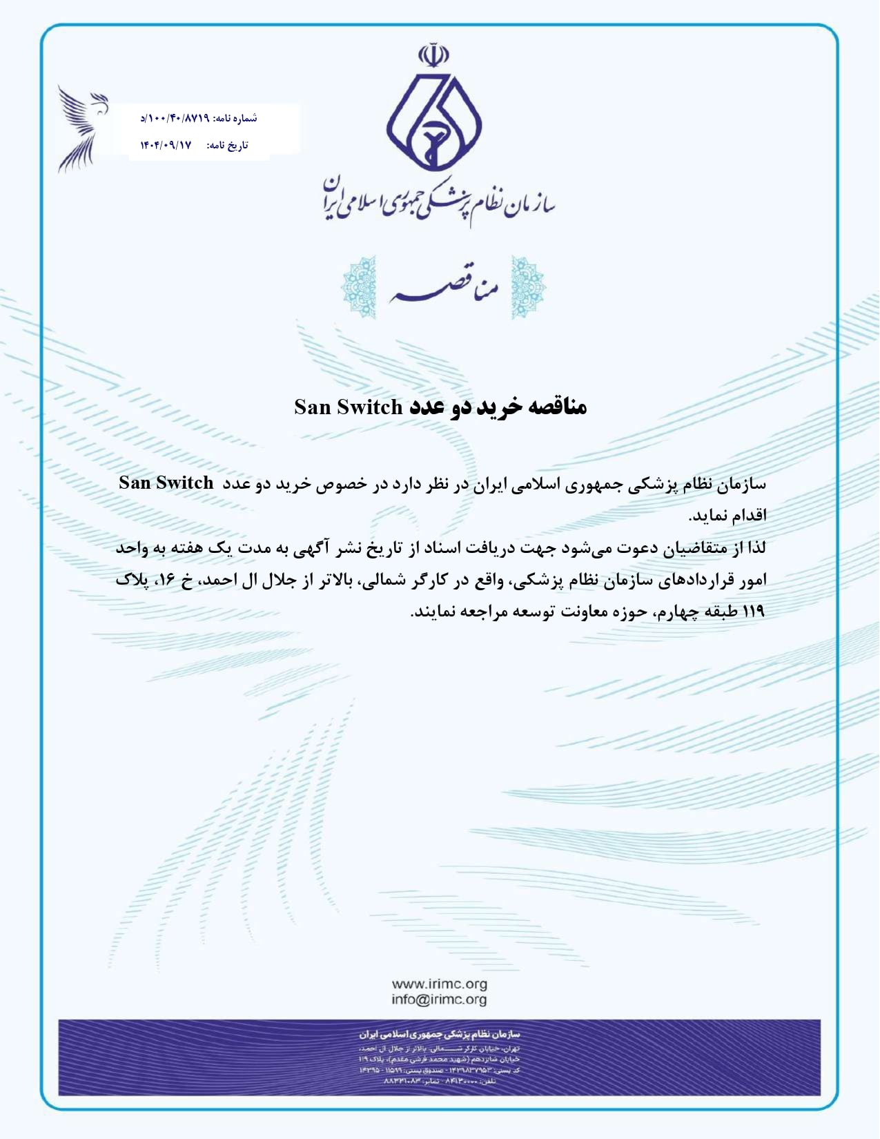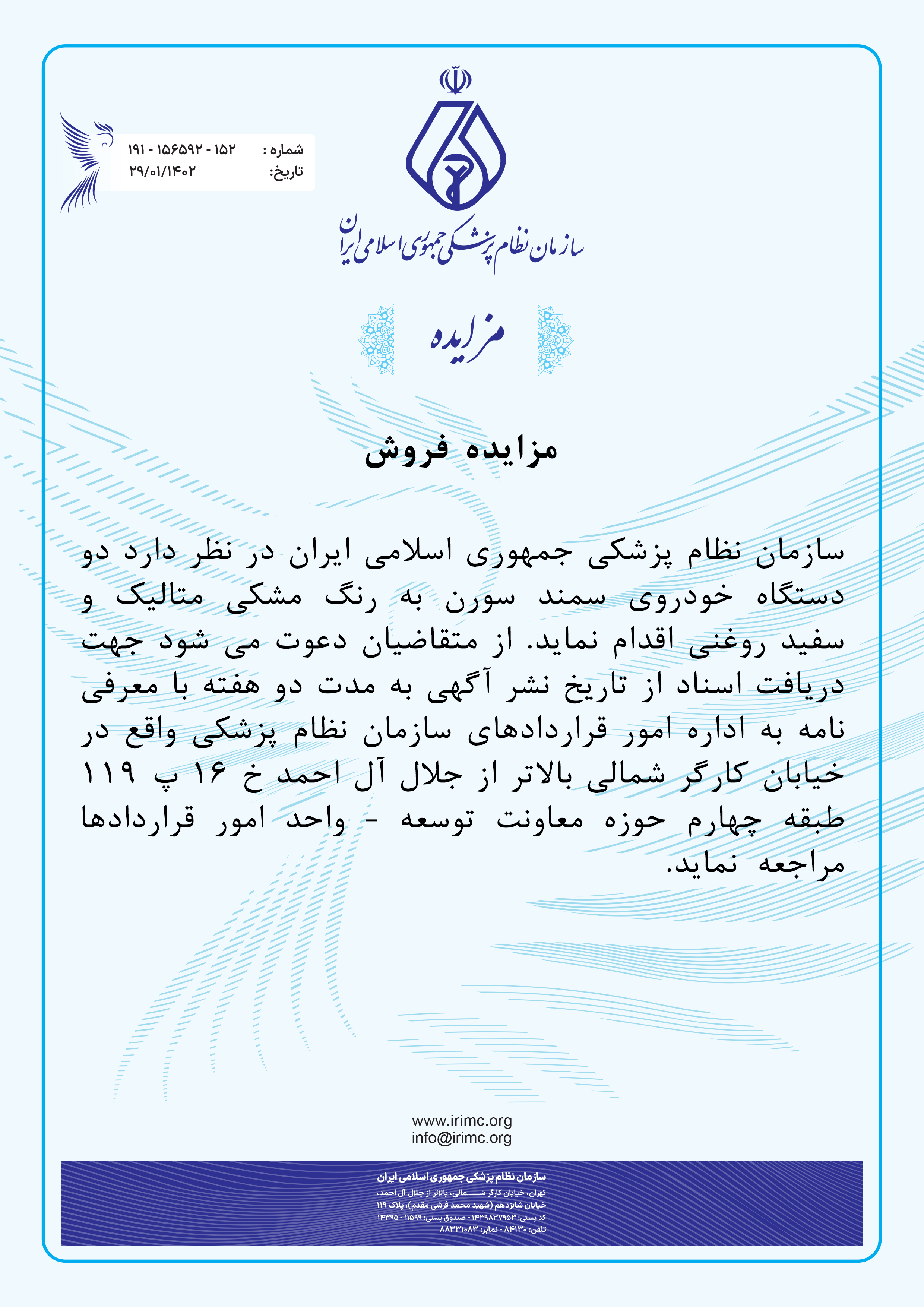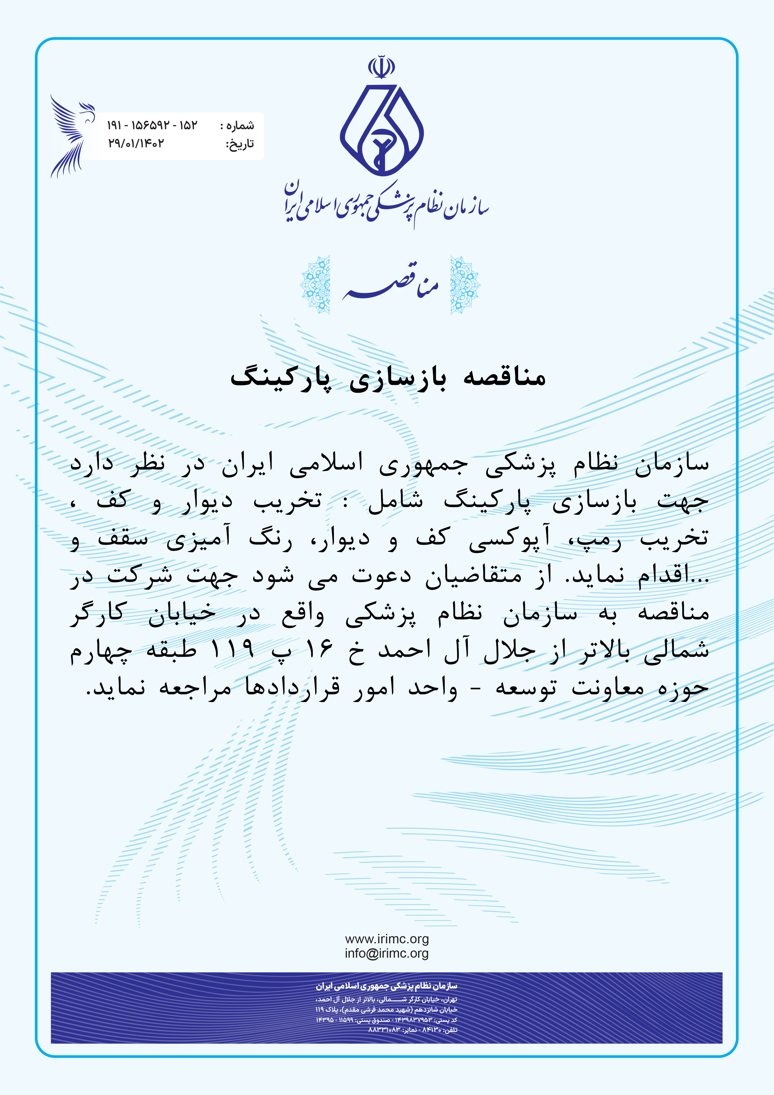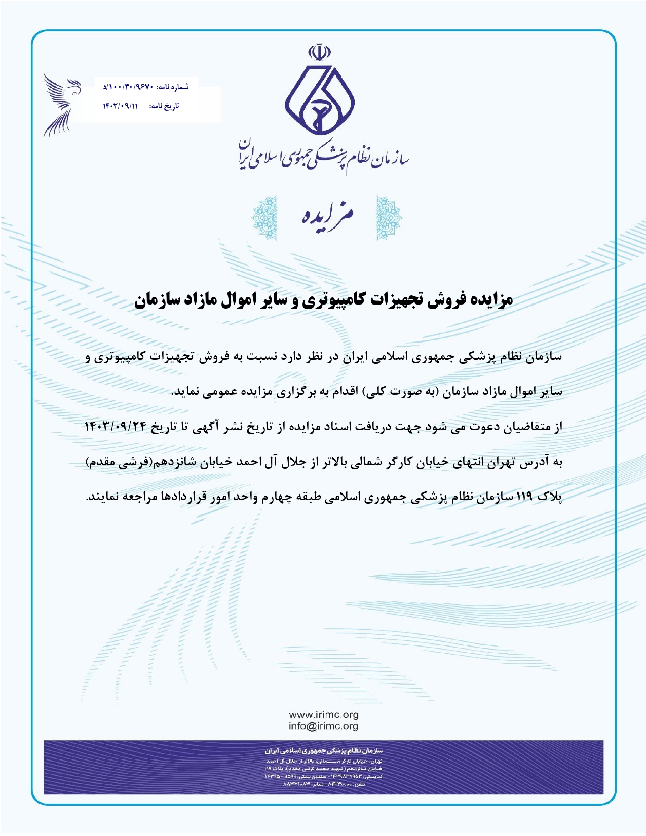 فراخوان واحد تدارکات سازمان نظام پزشکی