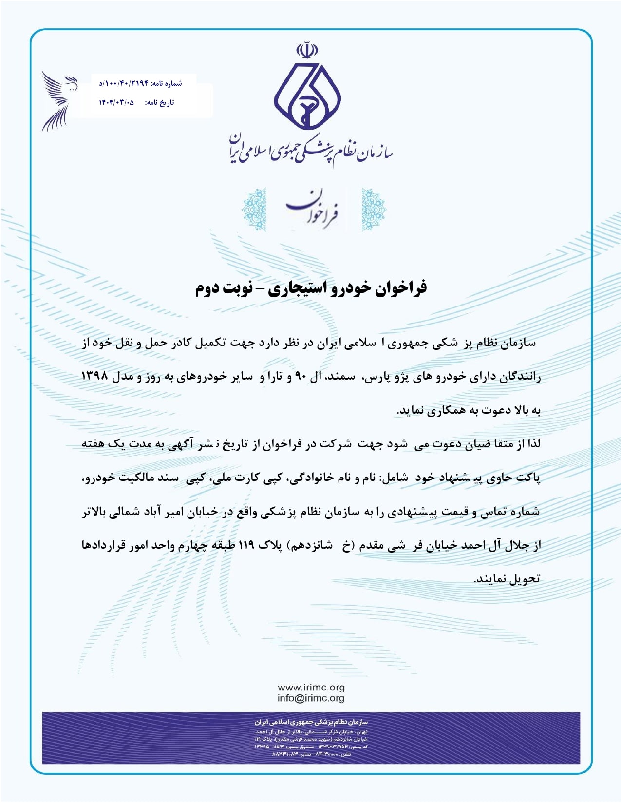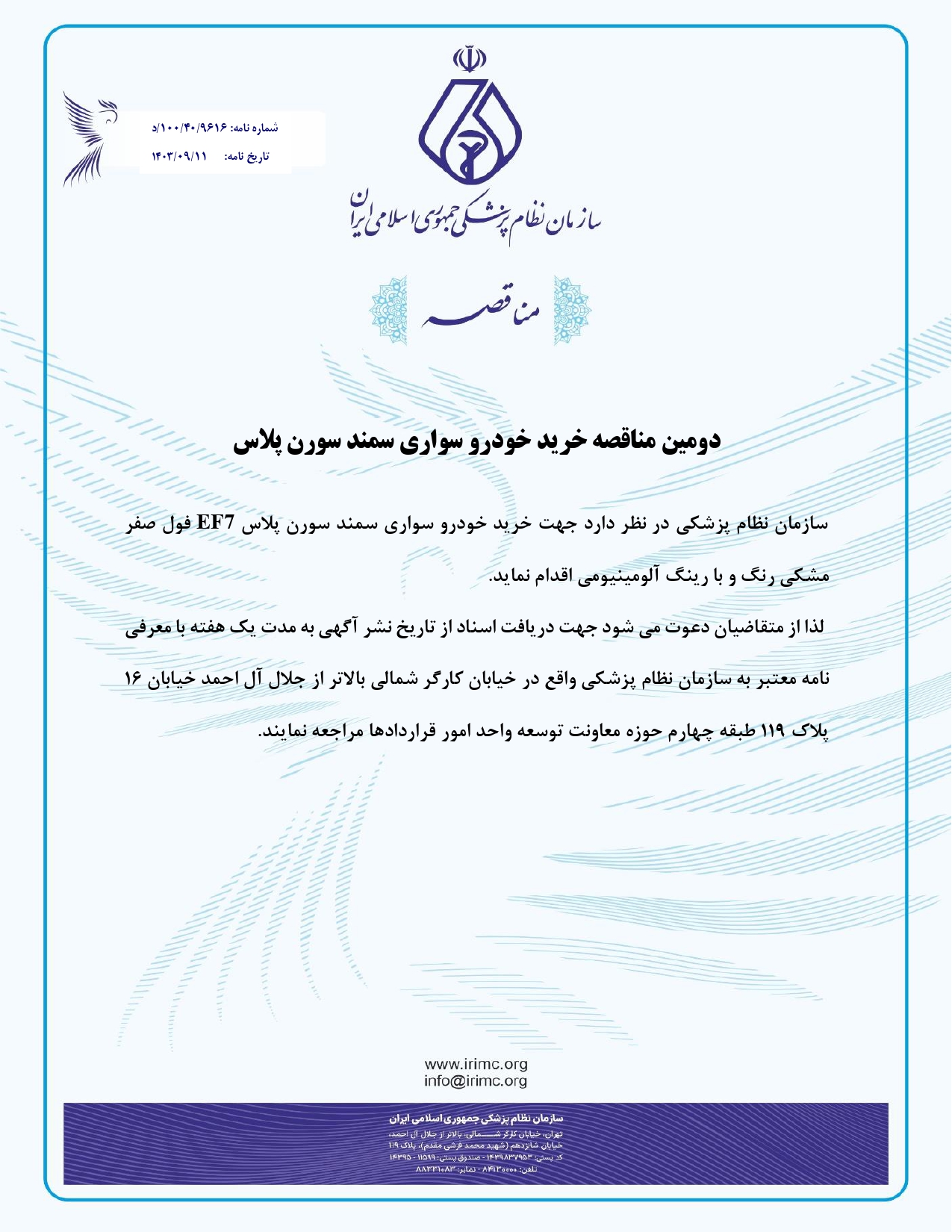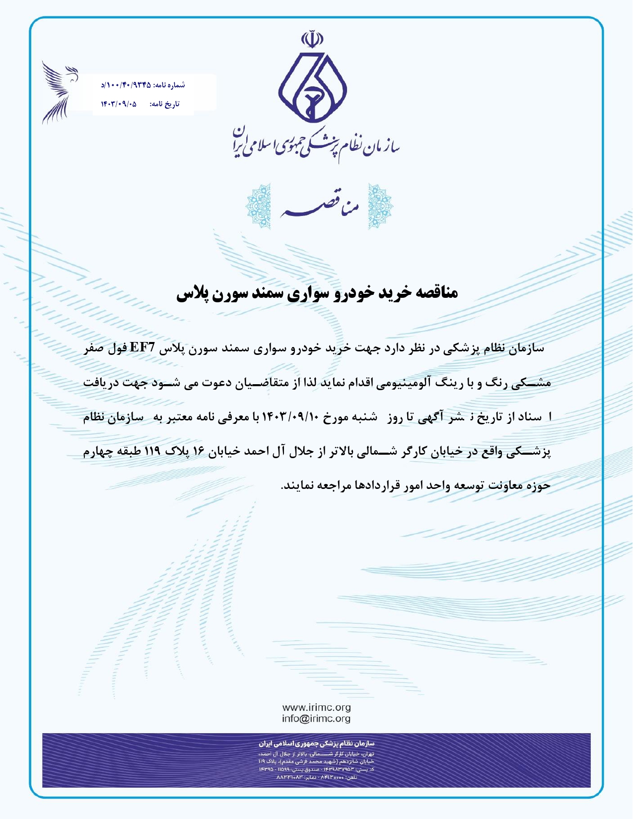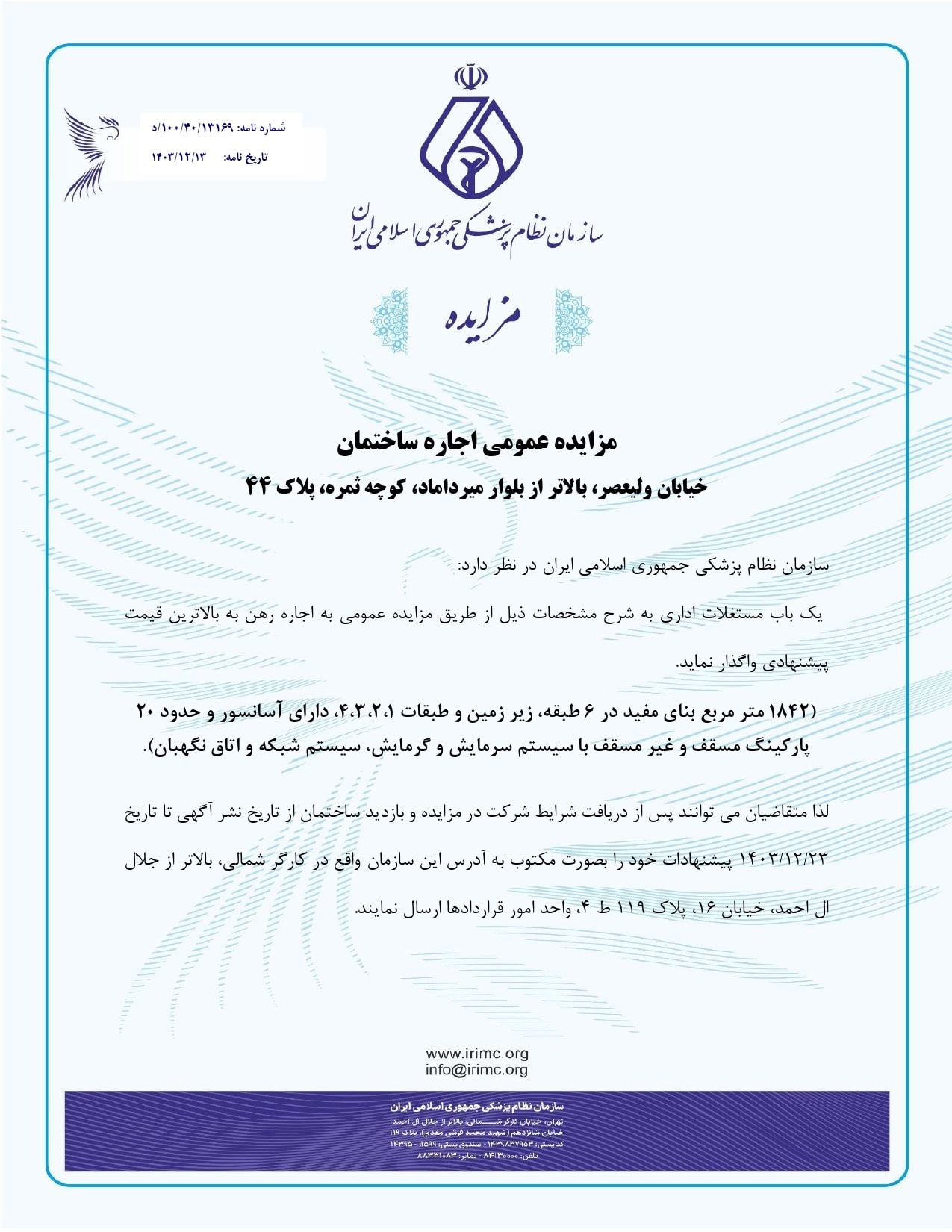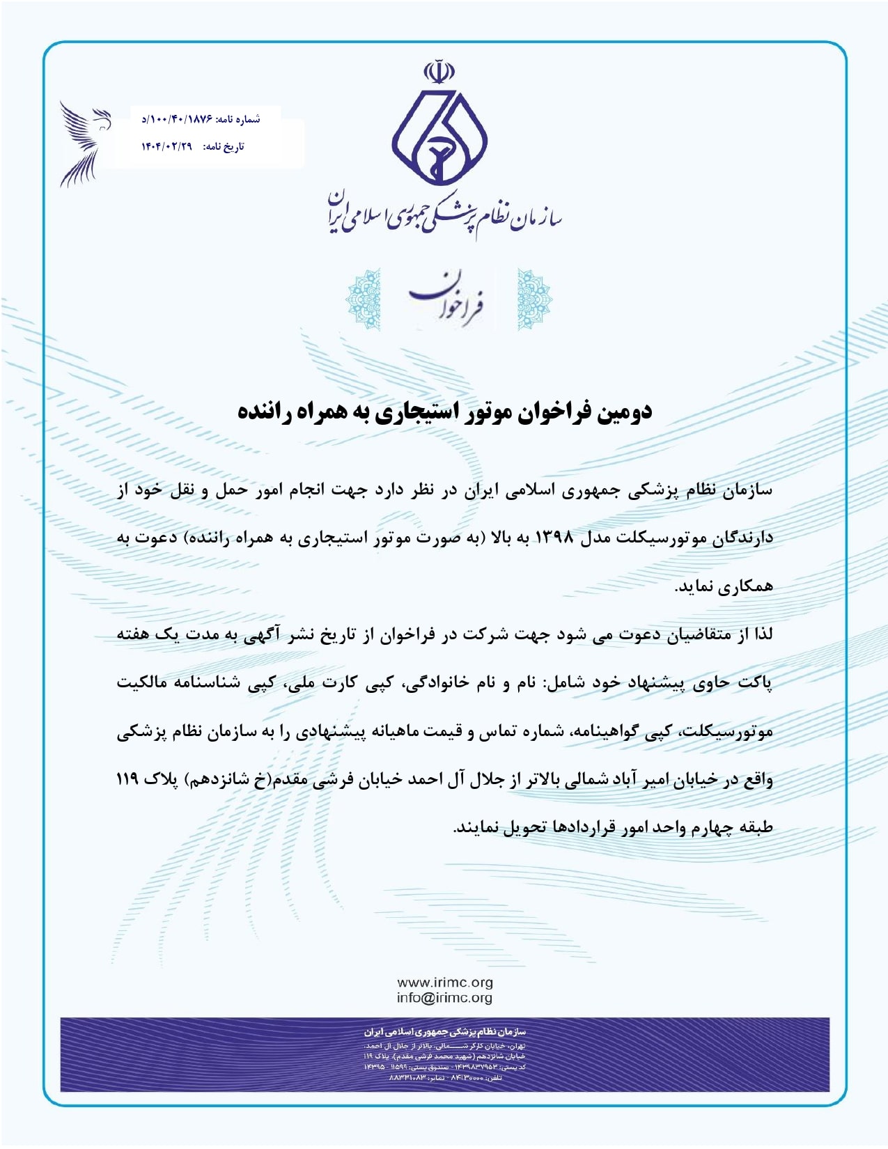 فراخوان واحد تدارکات سازمان نظام پزشکی