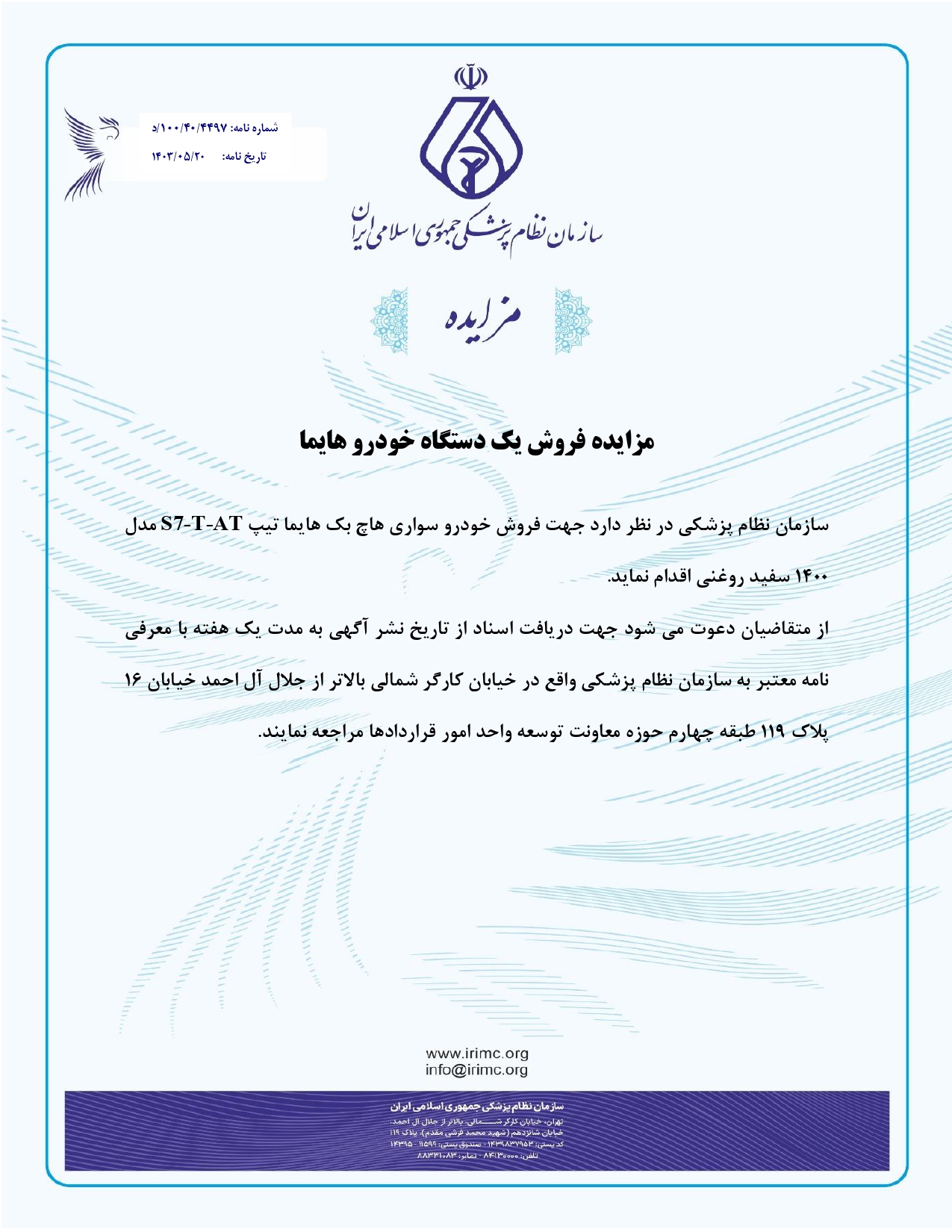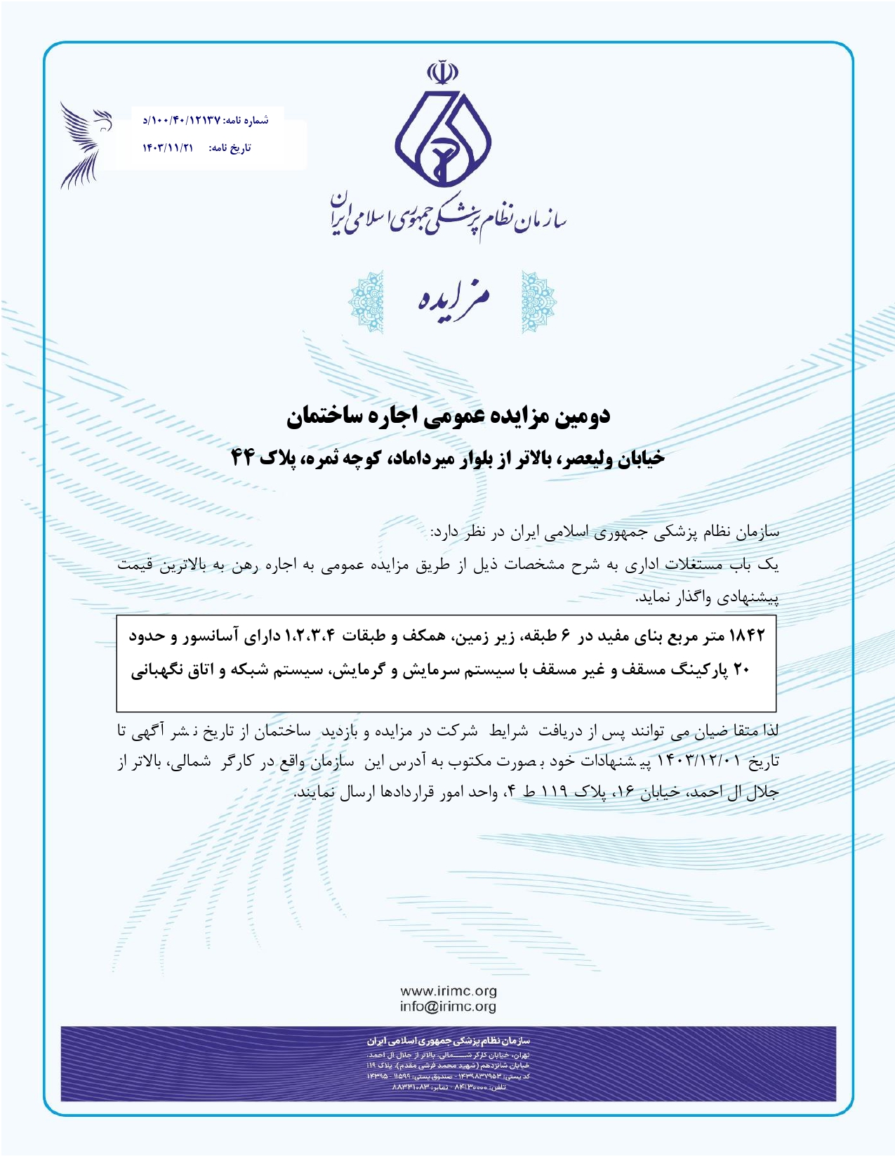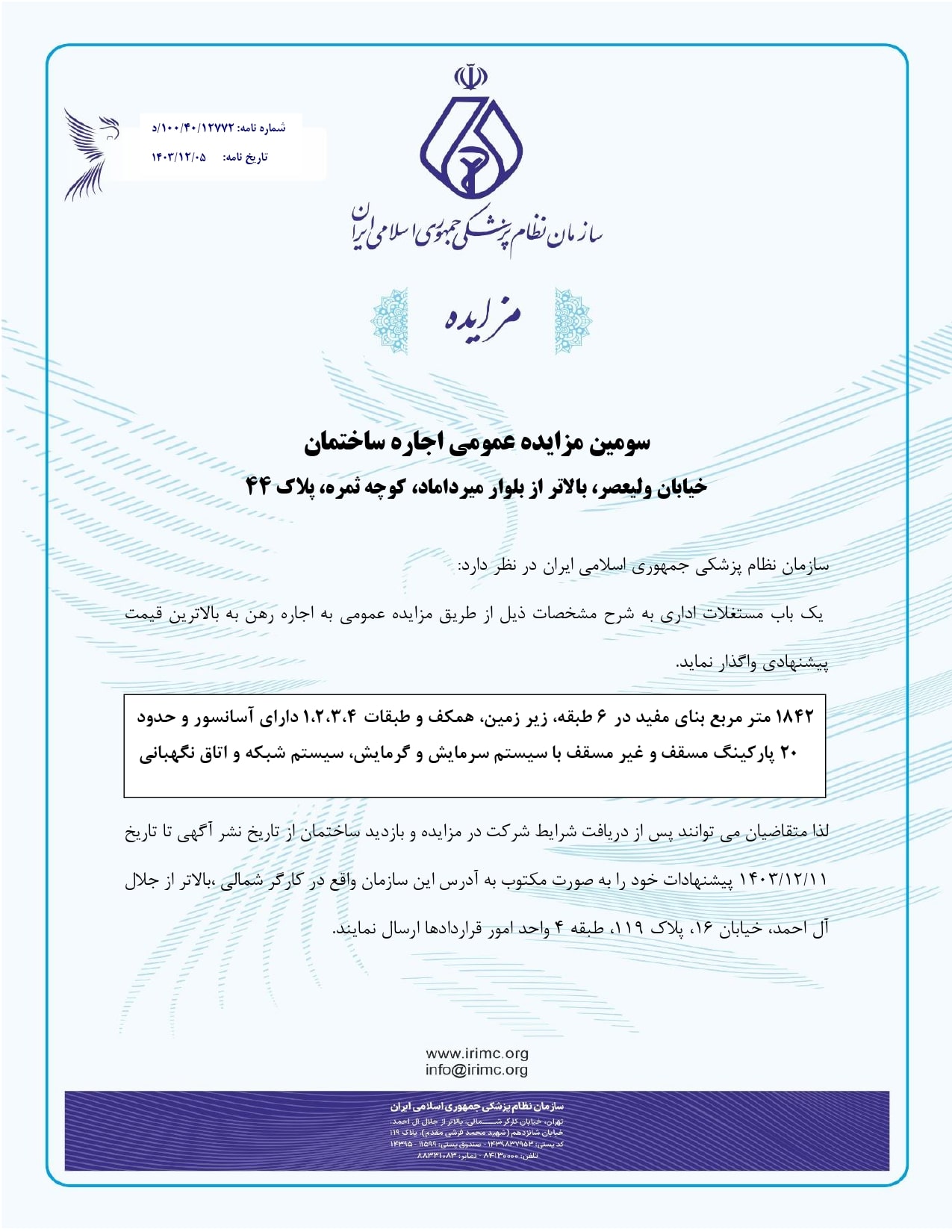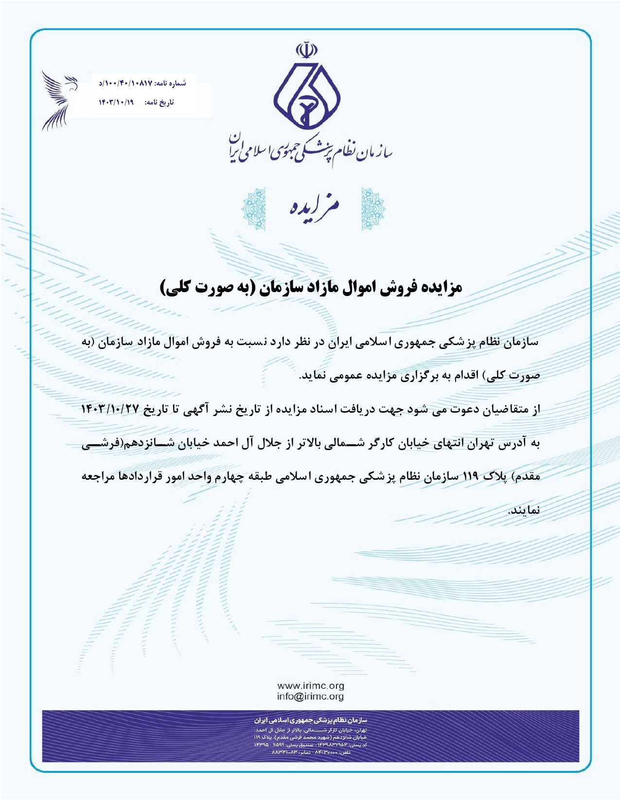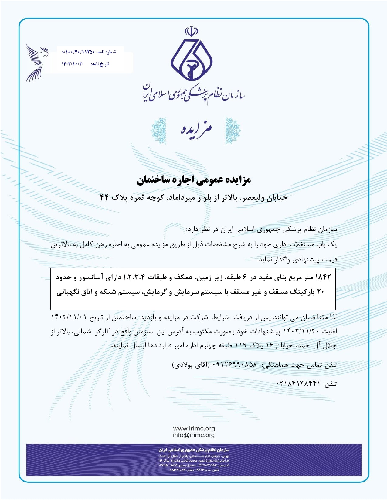 فراخوان واحد تدارکات سازمان نظام پزشکی
