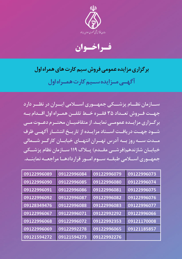 برگزاری مزایده عمومی فروش سیم کارت های همراه اول