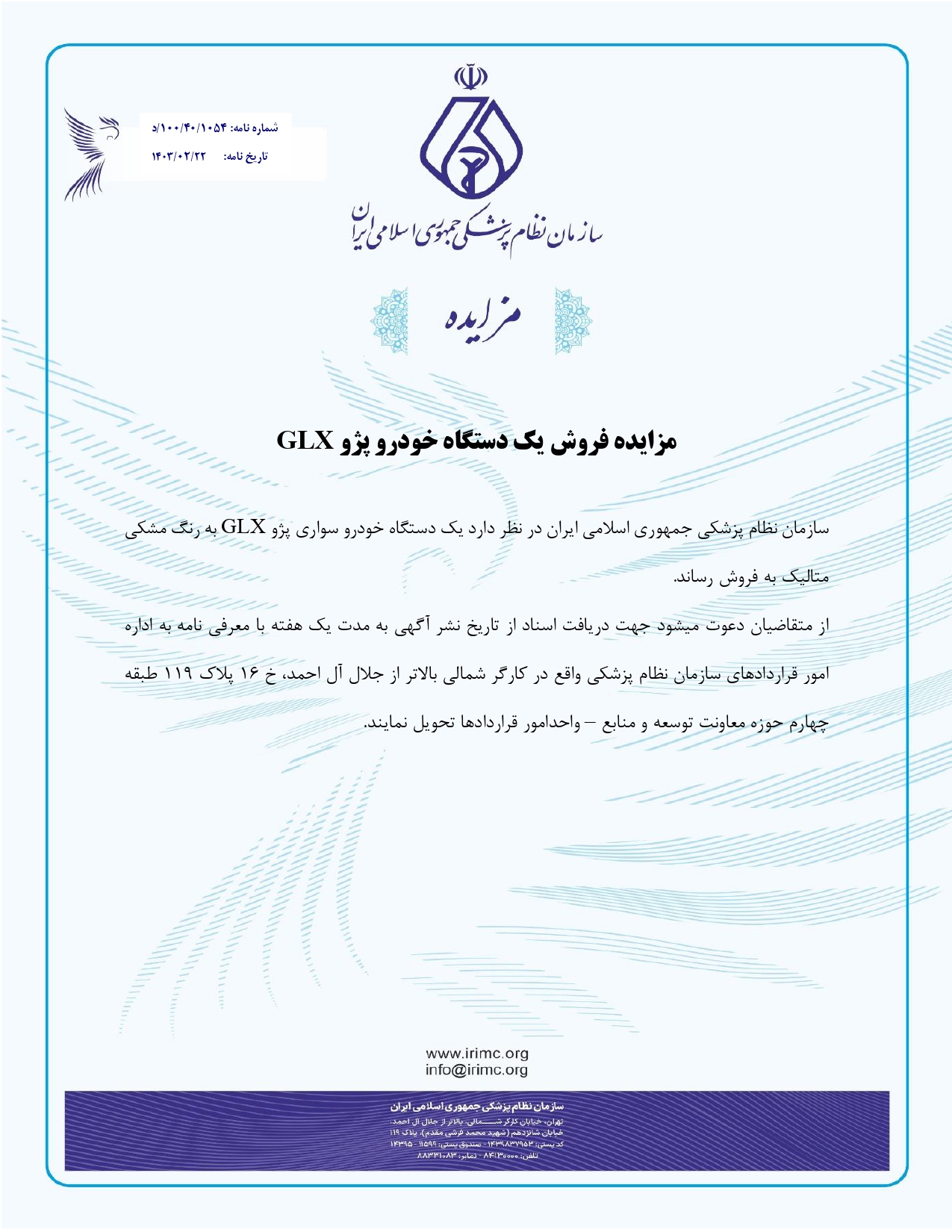 مزایده فروش یک دستگاه خودرو پژو GLX