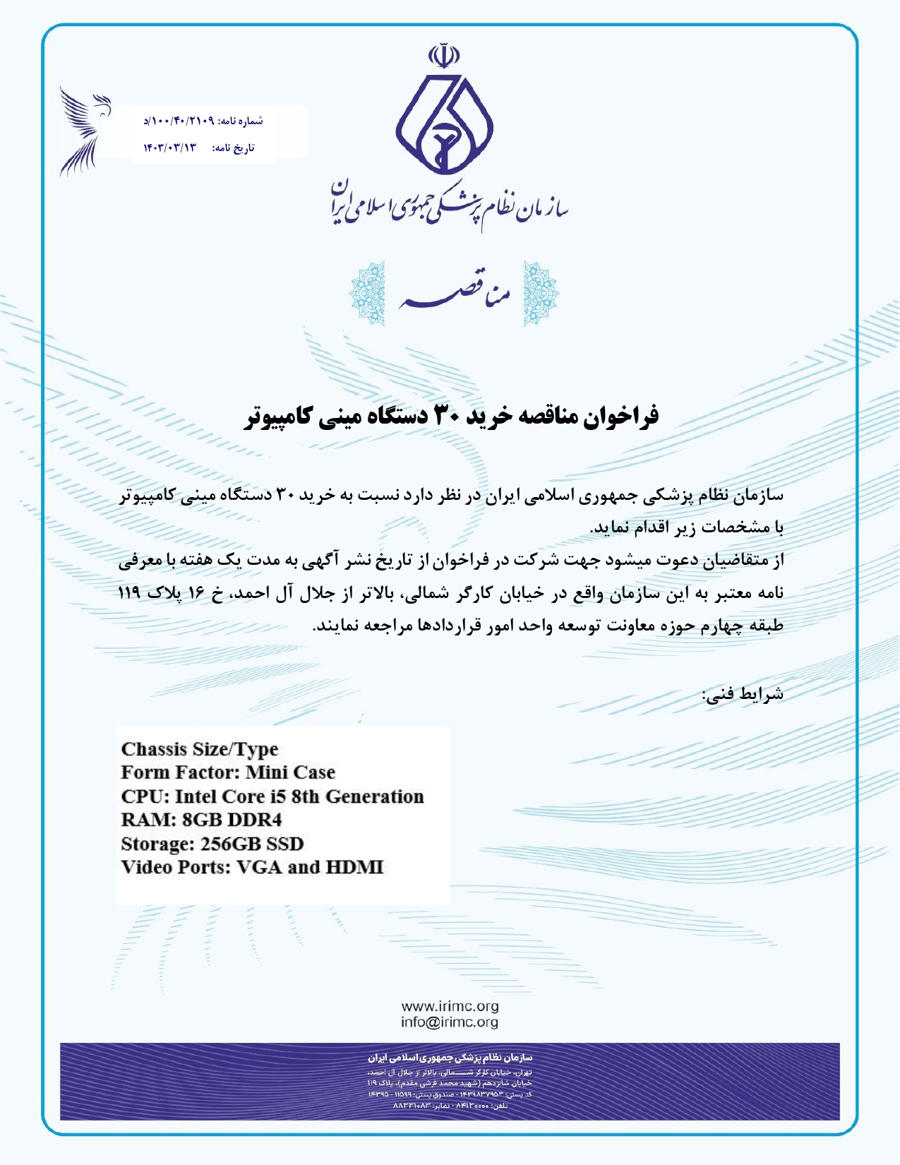 فراخوان مناقصه خرید 30 دستگاه مینی کامپیوتر