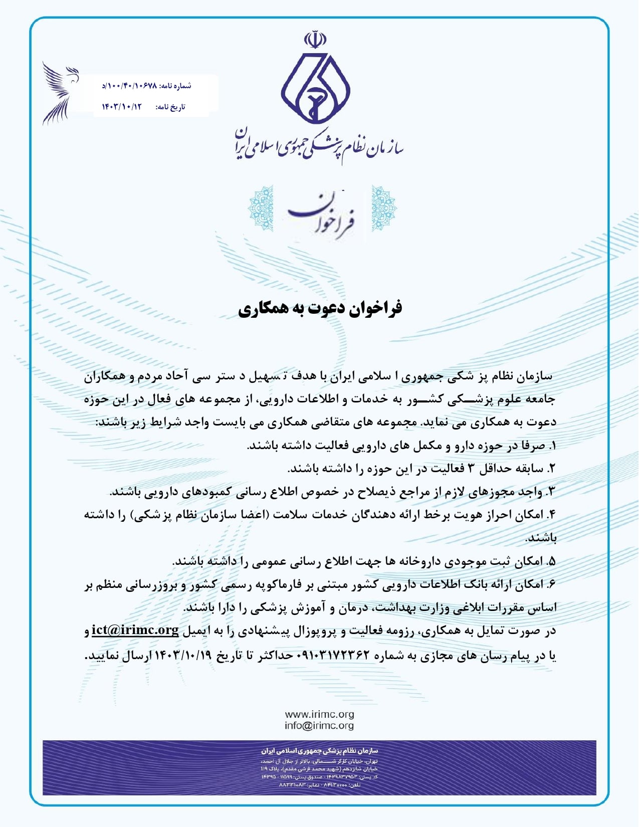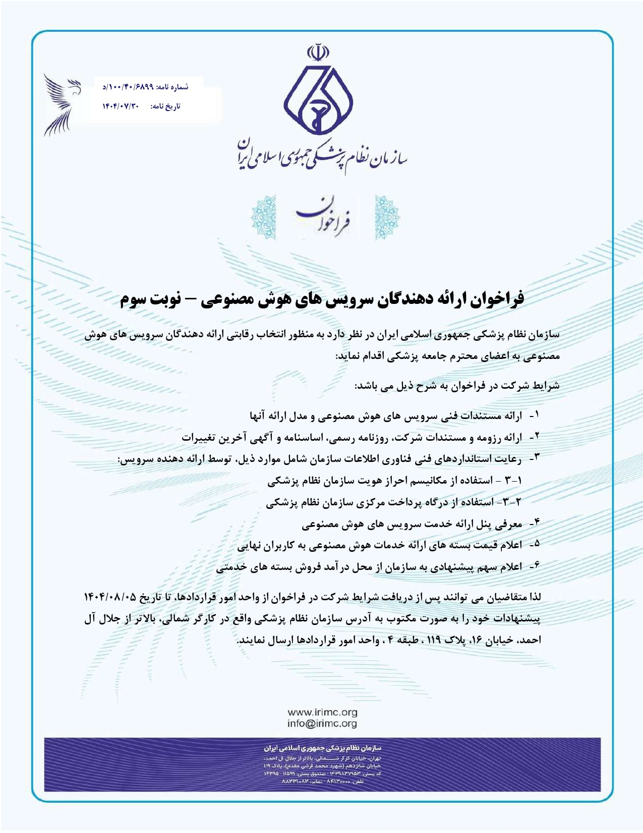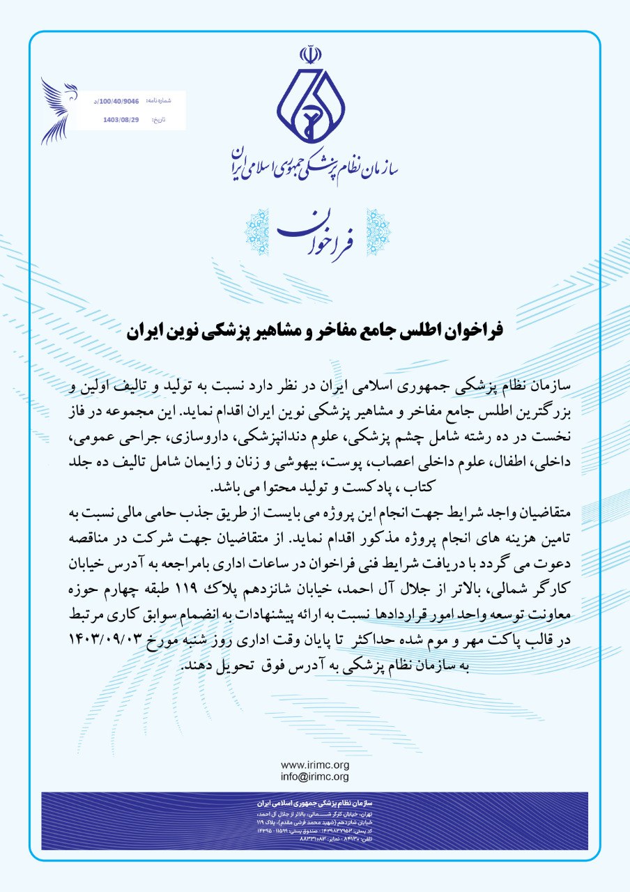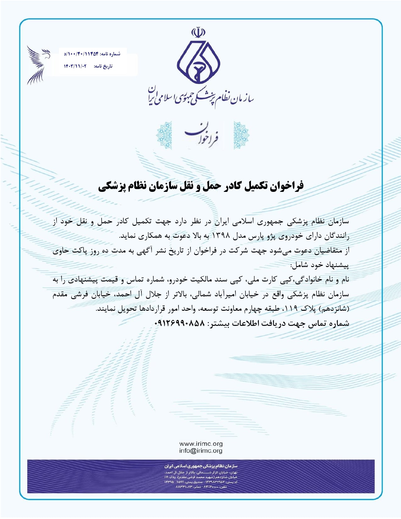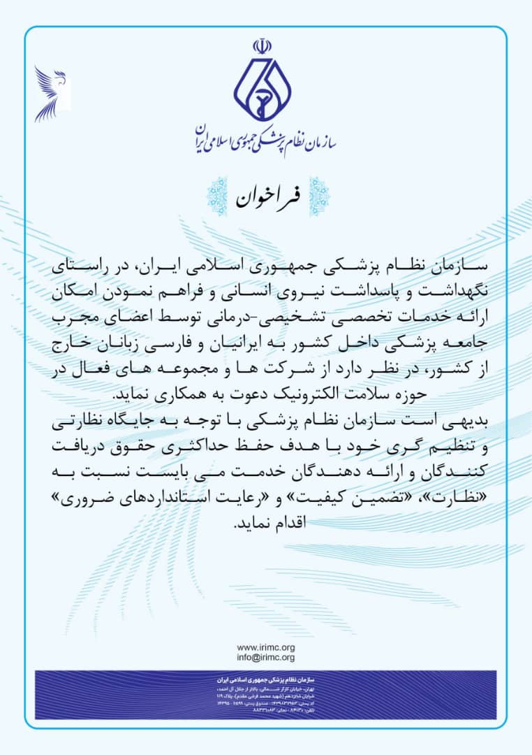 فراخوان سازمان نظام پزشکی به مناسبت روز پزشک شهریور 1402