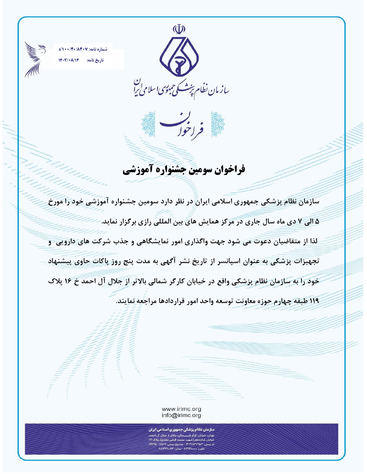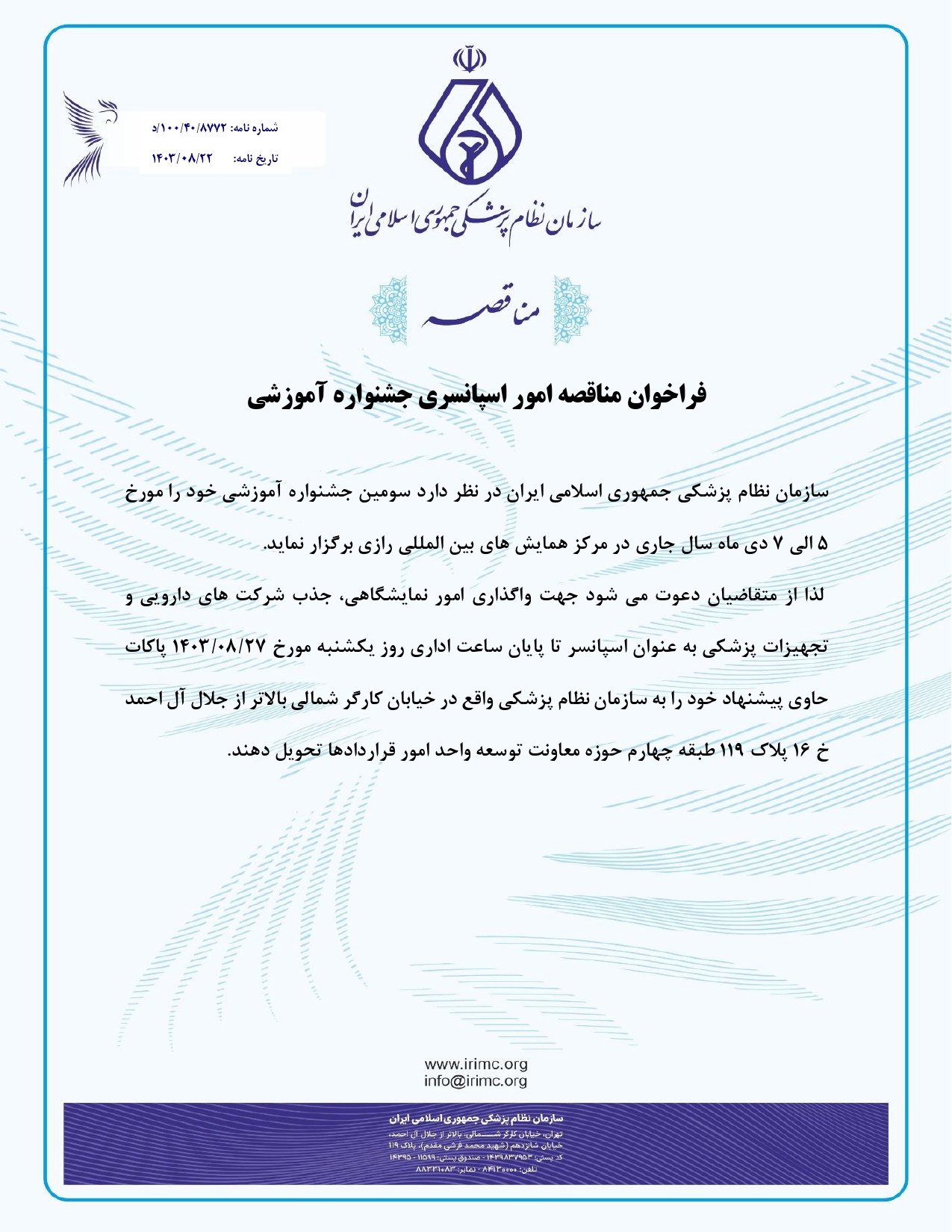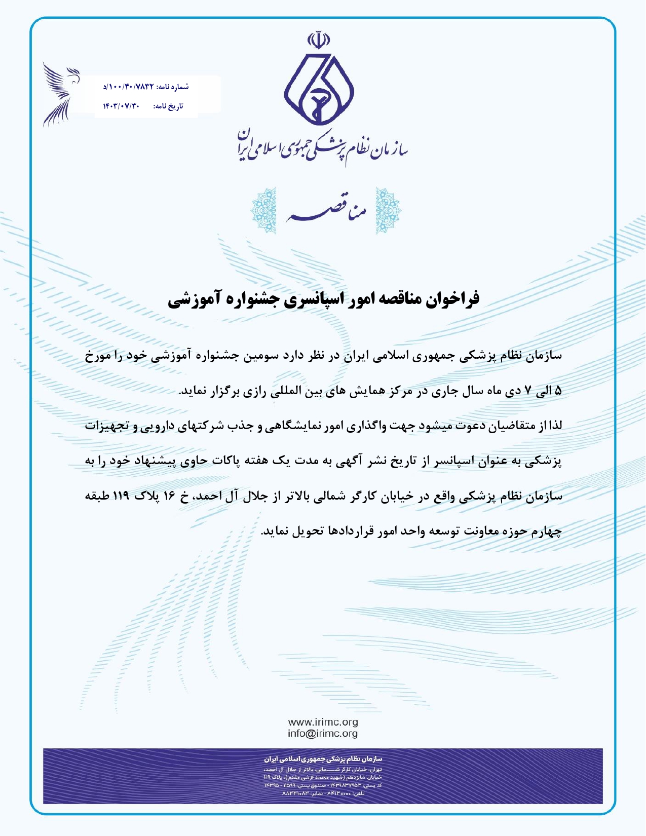 فراخوان مناقصه امور اسپانسری سومین جشنواره آموزشی