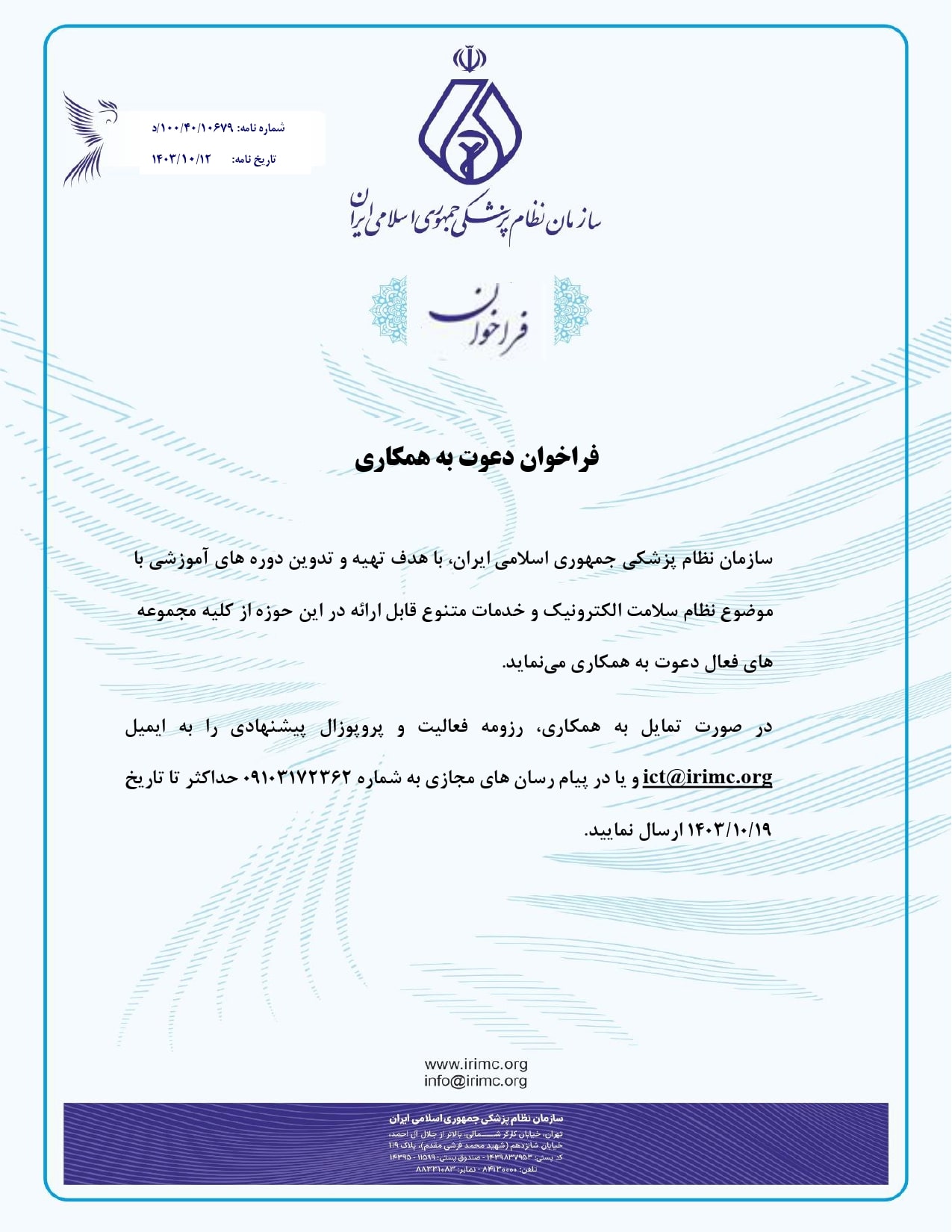 تا تاریخ 1403/07/06 تمدید شد/دعوت به همکاری از شرکت های فعال در حوزه سلامت الکترونیک
