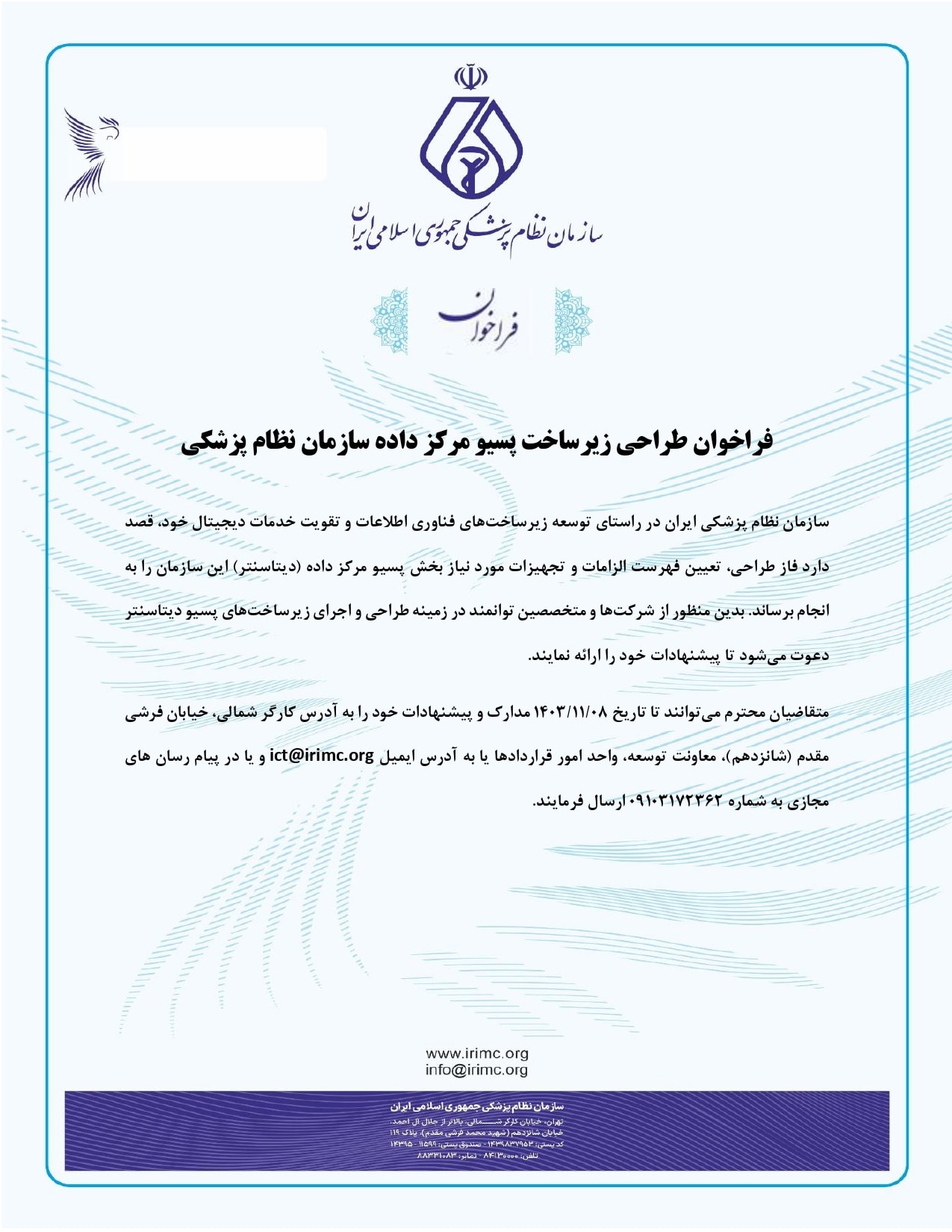 فراخوان طراحی زیرساخت پسیو مرکز داده سازمان نظام پزشکی