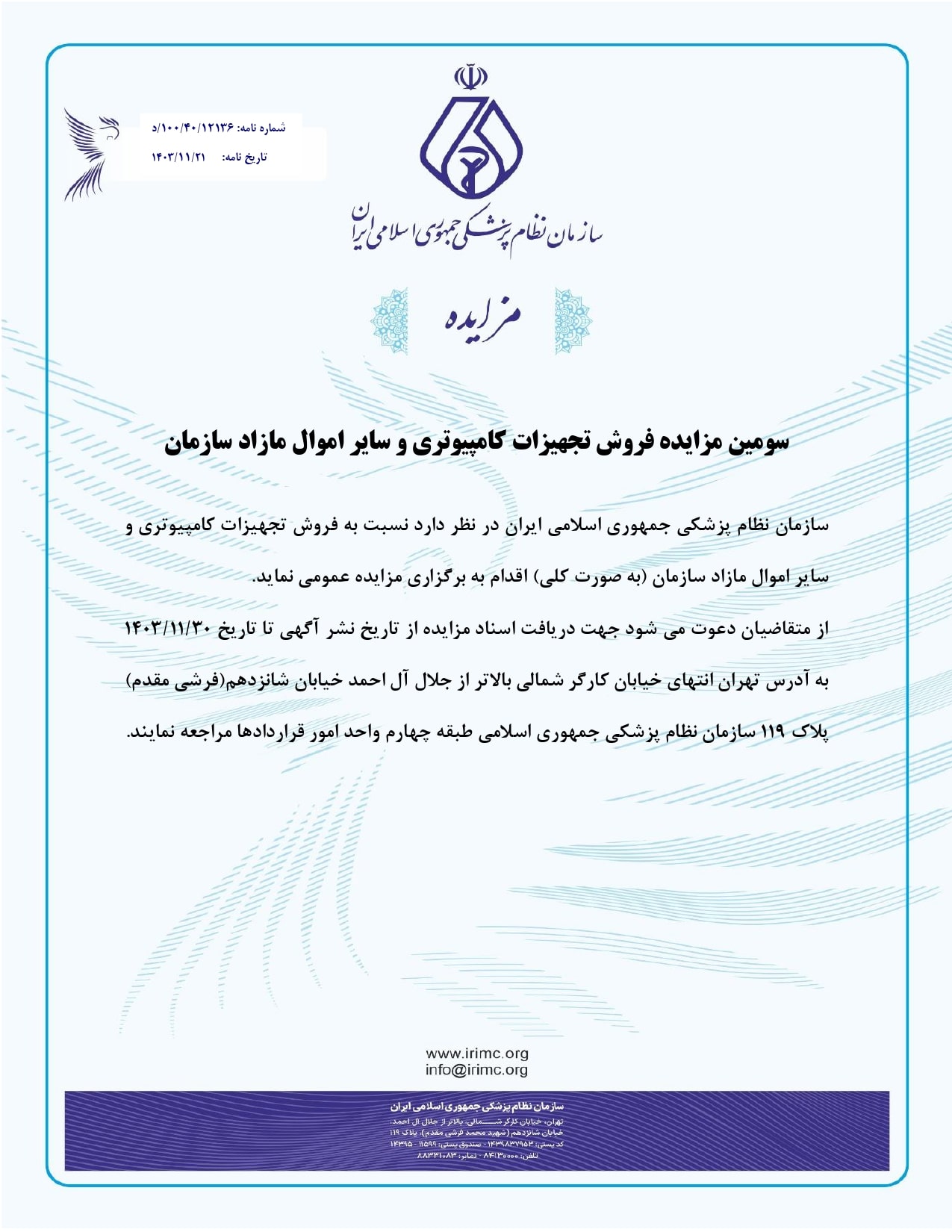 سومین مزایده فروش تجهیزات کامپیوتری و سایر اموال مازاد سازمان