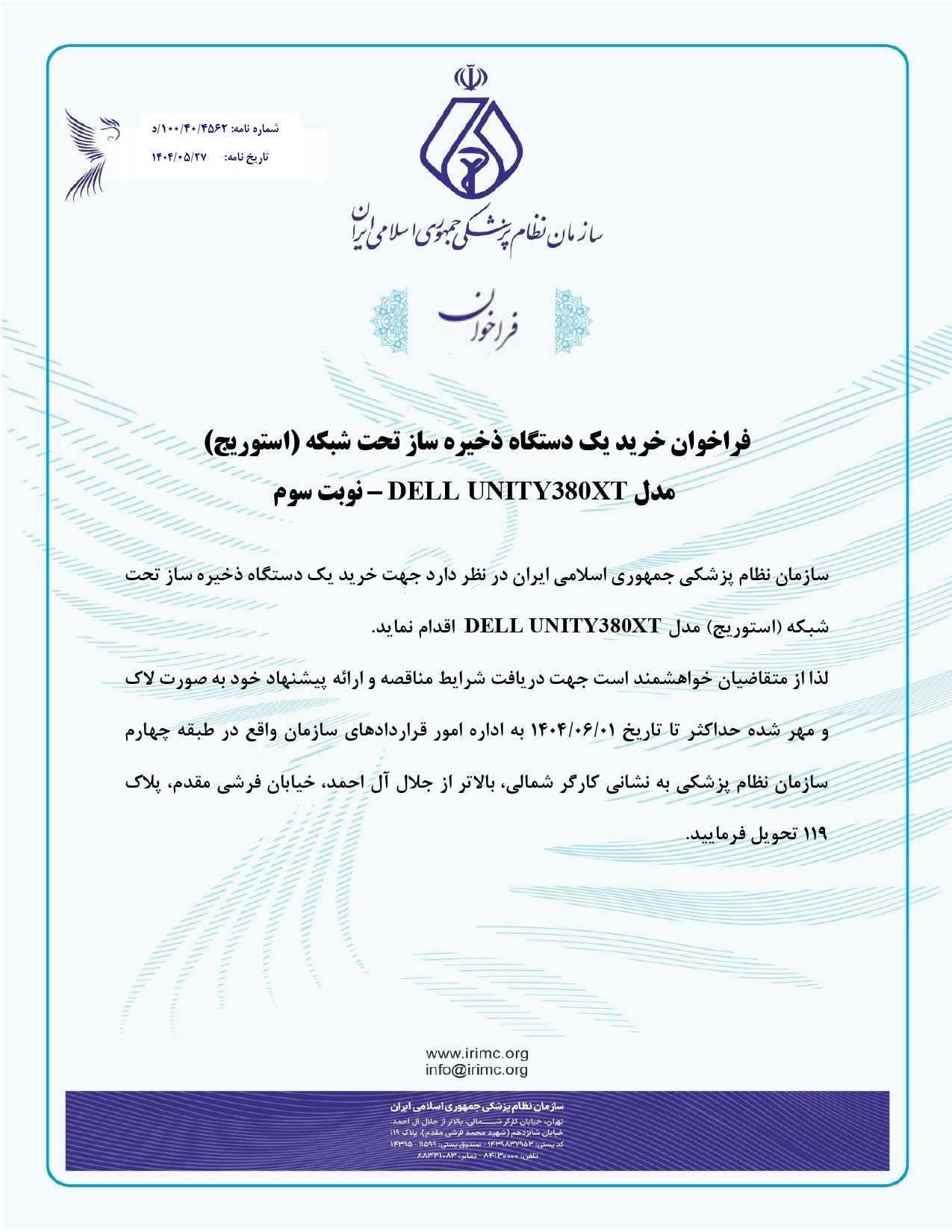 فراخوان خرید یک دستگاه ذخیره ساز تحت شبکه (استوریج)-نوبت سوم