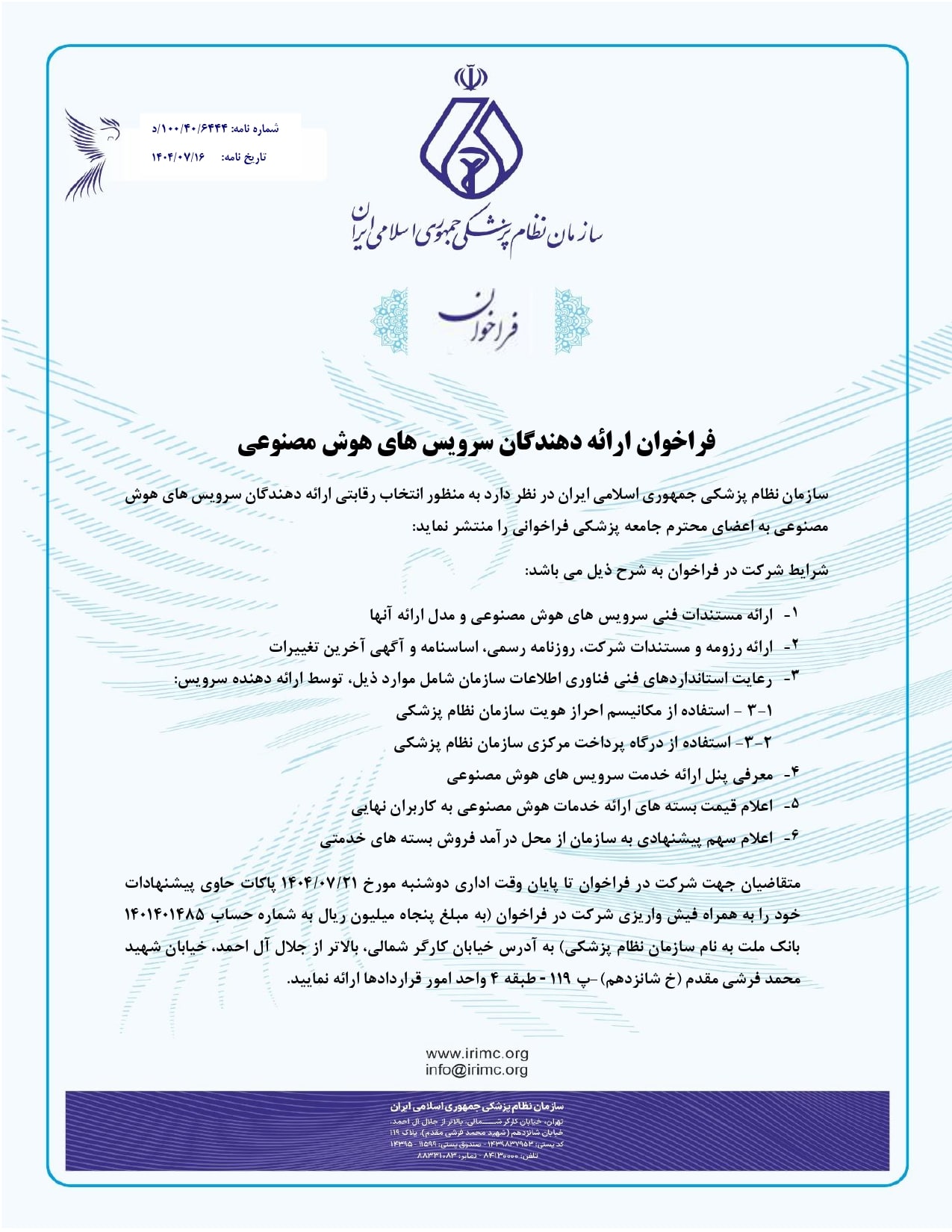 فراخوان ارائه دهندگان سرویس های هوش مصنوعی - نوبت سوم