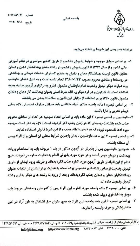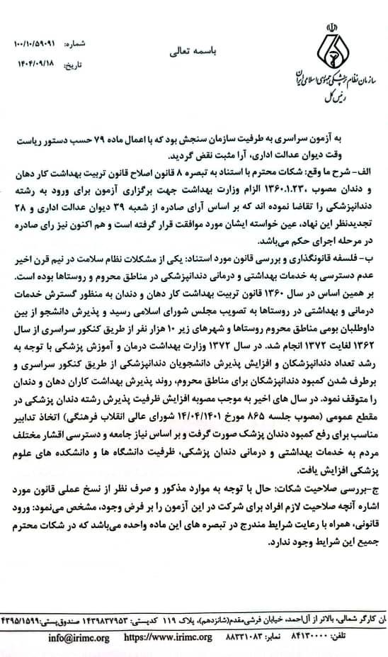 درخواست رسمی نظام پزشکی برای توقف اجرای دادنامه آزمون دندانپزشکی تبصره ۸