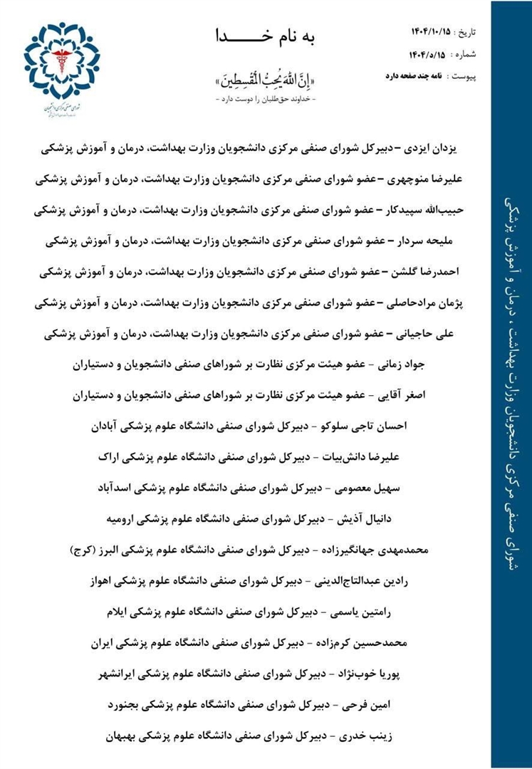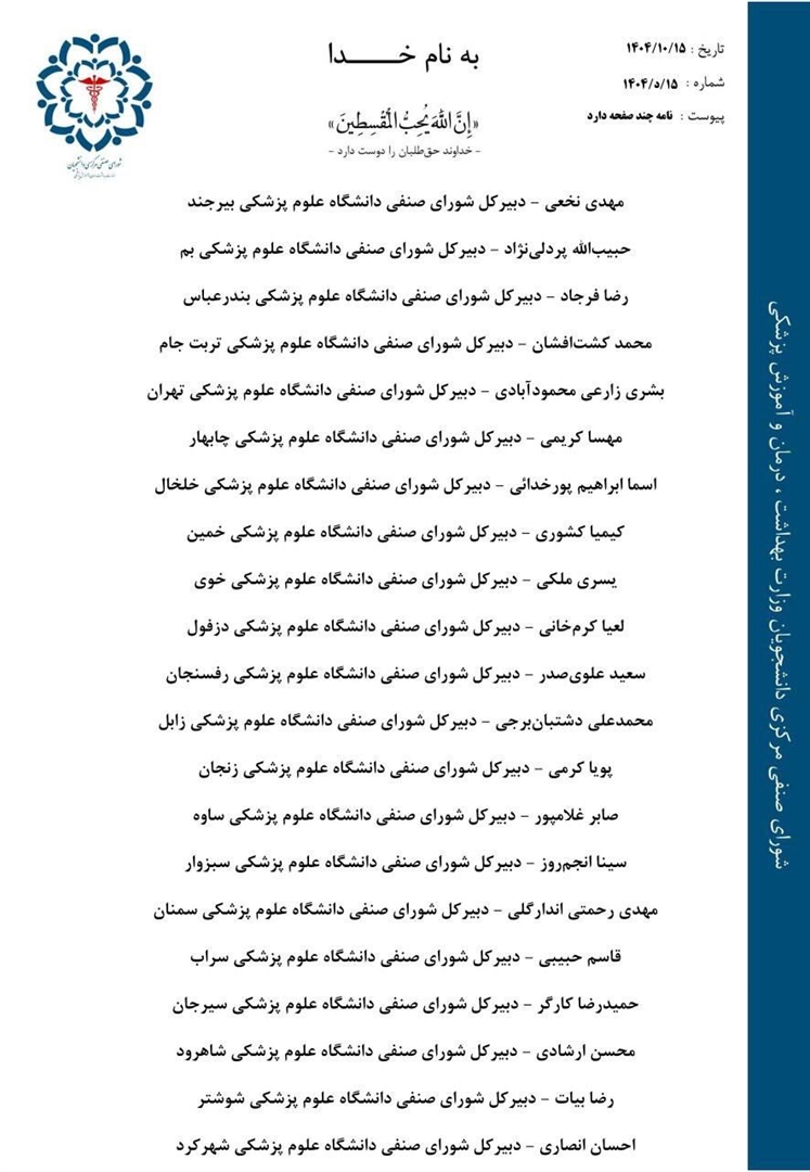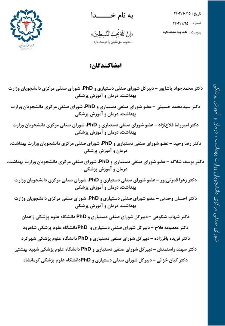 نامه جمعی دبیران‌کل شوراهای صنفی دانشگاه‌های علوم پزشکی کشور در مخالفت با افزایش ظرفیت پزشکی