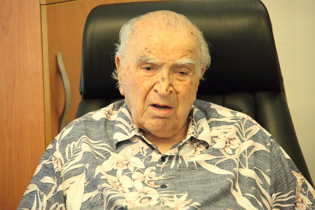 سر صحبت را خودش باز میکند. لبخند میزند و میپرسد: «به من چند ساله میخورد؟» صادقانه پاسخ میدهم که میدانم107ساله است. دستانش را بالا میبرد و میگوید: «ببین دستم نمیلرزد. هر روز قبل از اینکه از تختخواب پایین بیایم 33دقیقه نرمش میکنم. به خودم میگویم فقط همین امروز فرصت زندگی کردن دارم. پس قشنگ زندگی کنم.» همسرش، مامان توران چند سال پیش از دنیا رفت. «رأس ساعت 8:30 در دفترم حاضر میشوم و روزکاری را شروع میکنم.» دفتری در ساختمان 11طبقه که همه ساکنان از آقای قاسمی خواستهاند رئیس هیئتمدیره باشد. میگوید اینجا دفتر عشق است؛ جایی که دیدارهای دوستانه، قرارهای ملاقات با شاگردان، مطالعه و نوشتن و کارهایی از این قبیل را انجام میدهد.