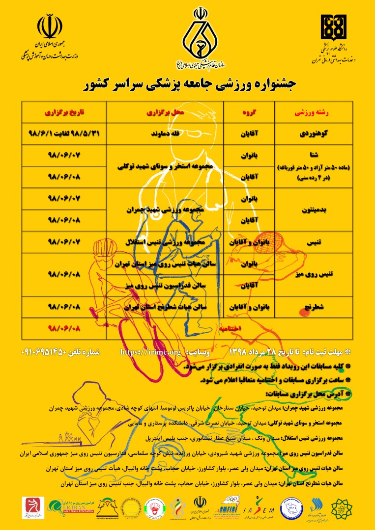 دبیر جشنواره ورزشی جامعه پزشکی سراسر کشور گفت: این جشنواره با شعار سلامت جامعه پزشکی و مردم با فعالیت ورزشی منظم از 1 لغایت 8 شهریور 98 برگزار می شود.