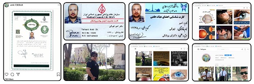 یکی از این صفحاتی که به دروغ خود را چشم پزشک معرفی کرده ؛ فردی به اسم امیر تهرانی است که هرگز از سازمان نظام پزشکی شماره نظام یا پروانه مطب دریافت نکرده است و این که با چه نیتی اقدام به فریب خوانندگان صفحه خود می کند به زودی از سوی مراجع ذیصلاح تشخیص داده خواهد شد.